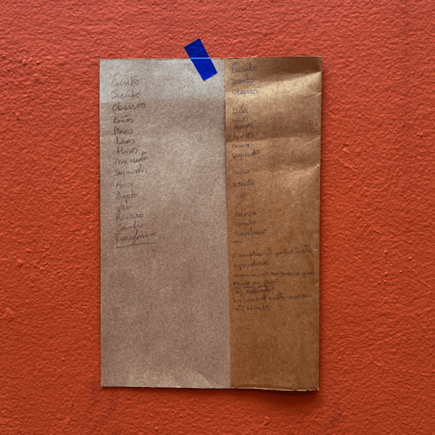 Siento, la sigo viendo, cambio de hoja, mi mano sigue escribiendo cursiva y rapidísimo. La sigo viendo desde otro ángulo, de golpe caen colores del cielo que me impiden continuar pero sigo, ahora, viendo la lluvia amarilla que dura mucho tiempo, cae de forma intensa, cuando vuelvo a escribir sigo observando la transformación, que seguramente será infinita. La finitud está en este texto, salgo con mi block y mi lápiz a seguir el camino de la observación y conexión.