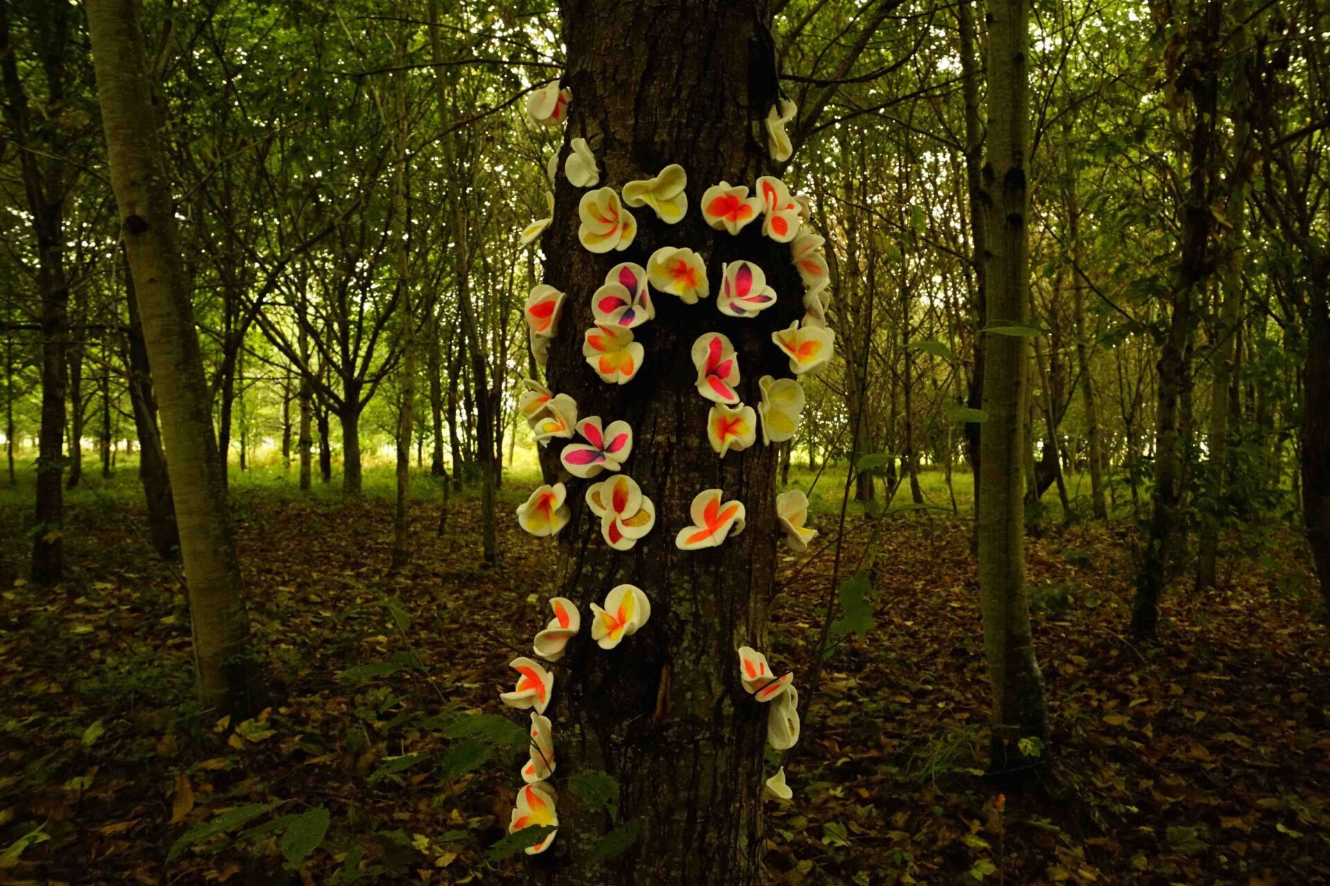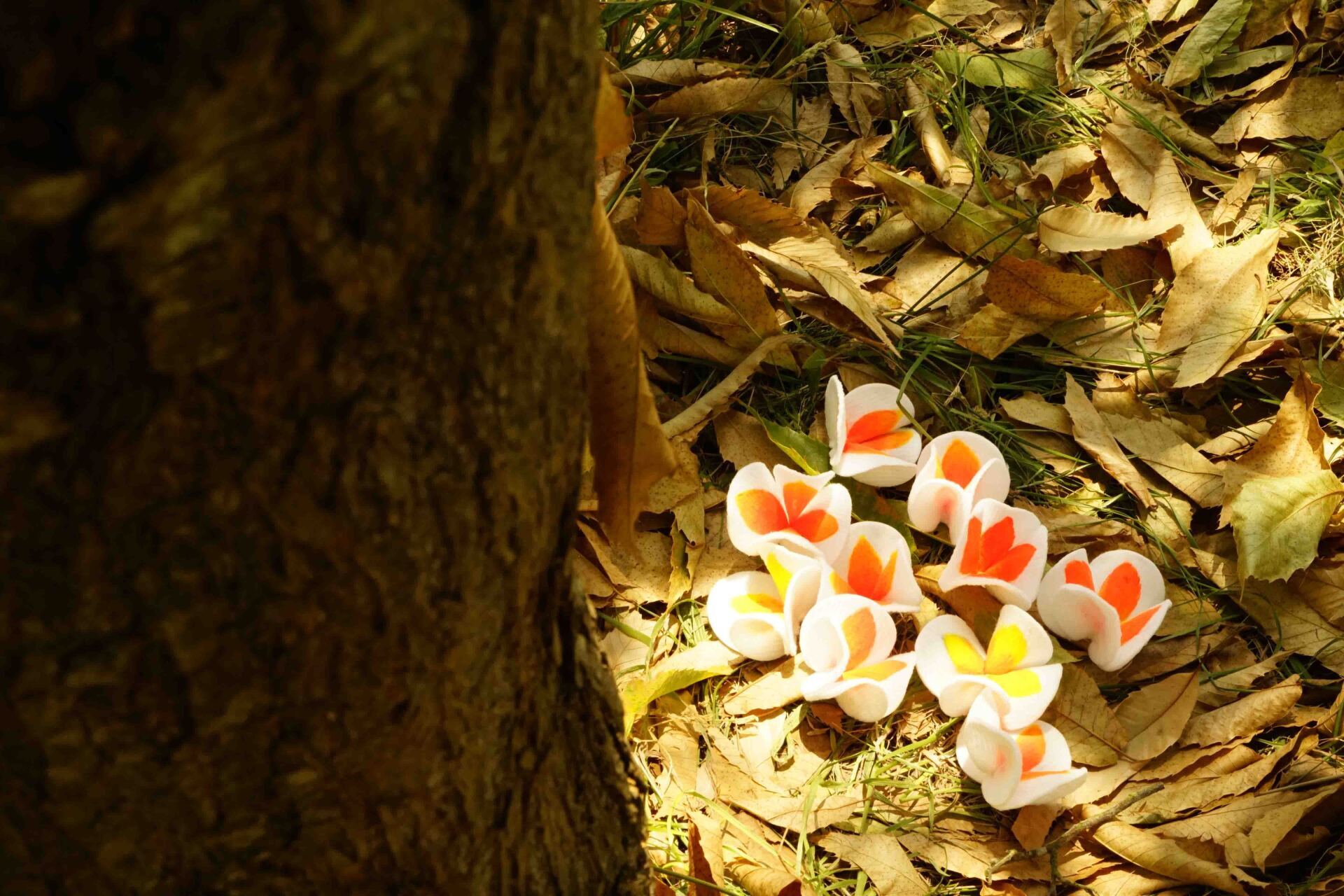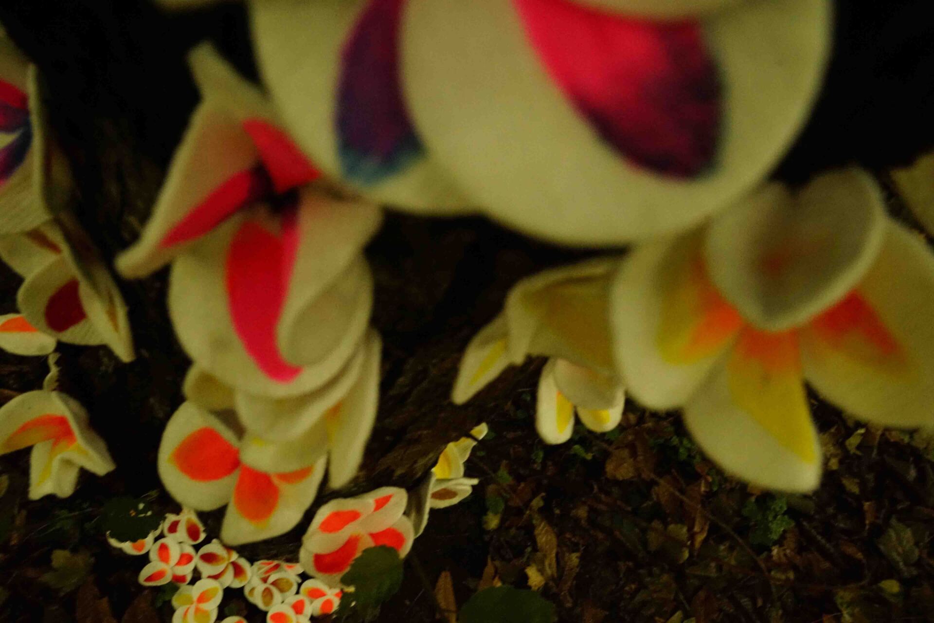 Con esta felicidad, la pequeña tuvo la necesidad de crear flores para la adulta. Sin saber muy bien porque, estas flores coloridas y luminosas comenzaron a nacer.