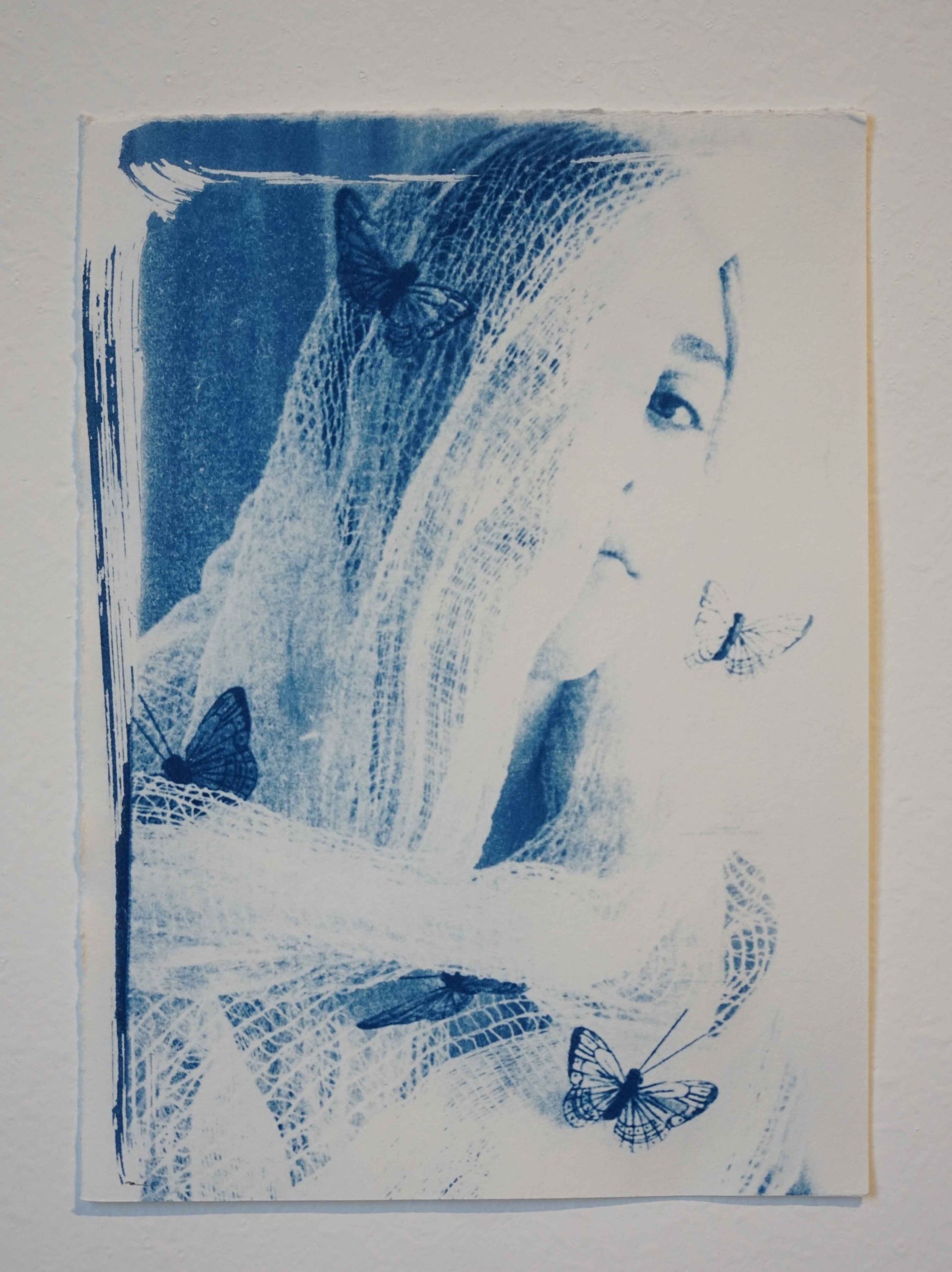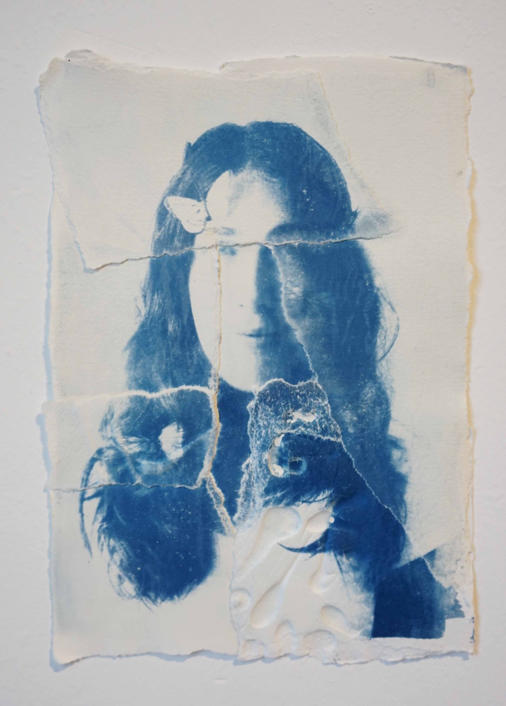 Proyecto mariposa surge a partir de la investigación de los vínculos en mi familia, especialmente el vínculo entre las mujeres. En esta obra quise homenajear a mis hermanas, en donde el poder femenino se vuelve el centro en este proceso. Trabajando la fotografía para inmortalizar a cada una de ellas, la cianotipia como forma de revelado donde sus colores azules dejan huellas en cada uno de sus retratos y generan un misterio en cada una de ellas. La mariposa representa lo sensible, lo frágil, el poder, la fuerza, lo libre y lo ancestral en este trabajo, y lo más importante la transmutación del alma de cada una de ellas.