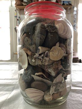 ... classified by similarities, differences, identities, bivalve mollusks, stones, lands, sea urchins, leaves, bird bones, a land snail shell, treasures found in the south kept in a box from the north all elements from the earth... beginning and origin...