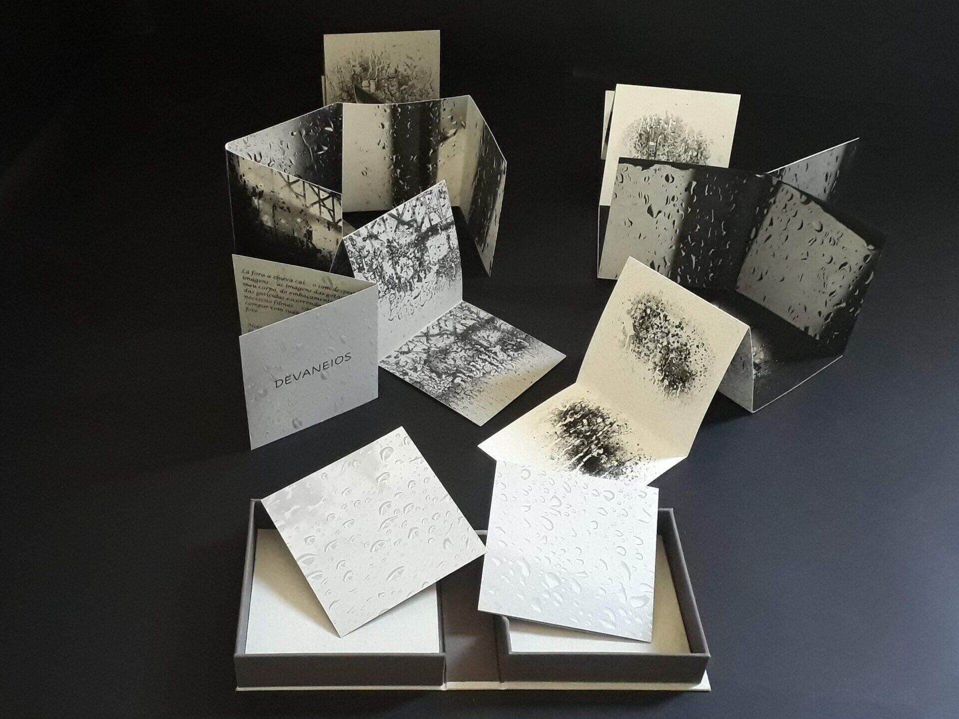 Lá fora a chuva cai... o som desperta imagens... as imagens das gotas pelo meu corpo, do embaçamento do vidro e das gotículas escorrendo pelas janelas... necessito filmar... captar seu som... compor com suas gotículas... vídeo e foto....