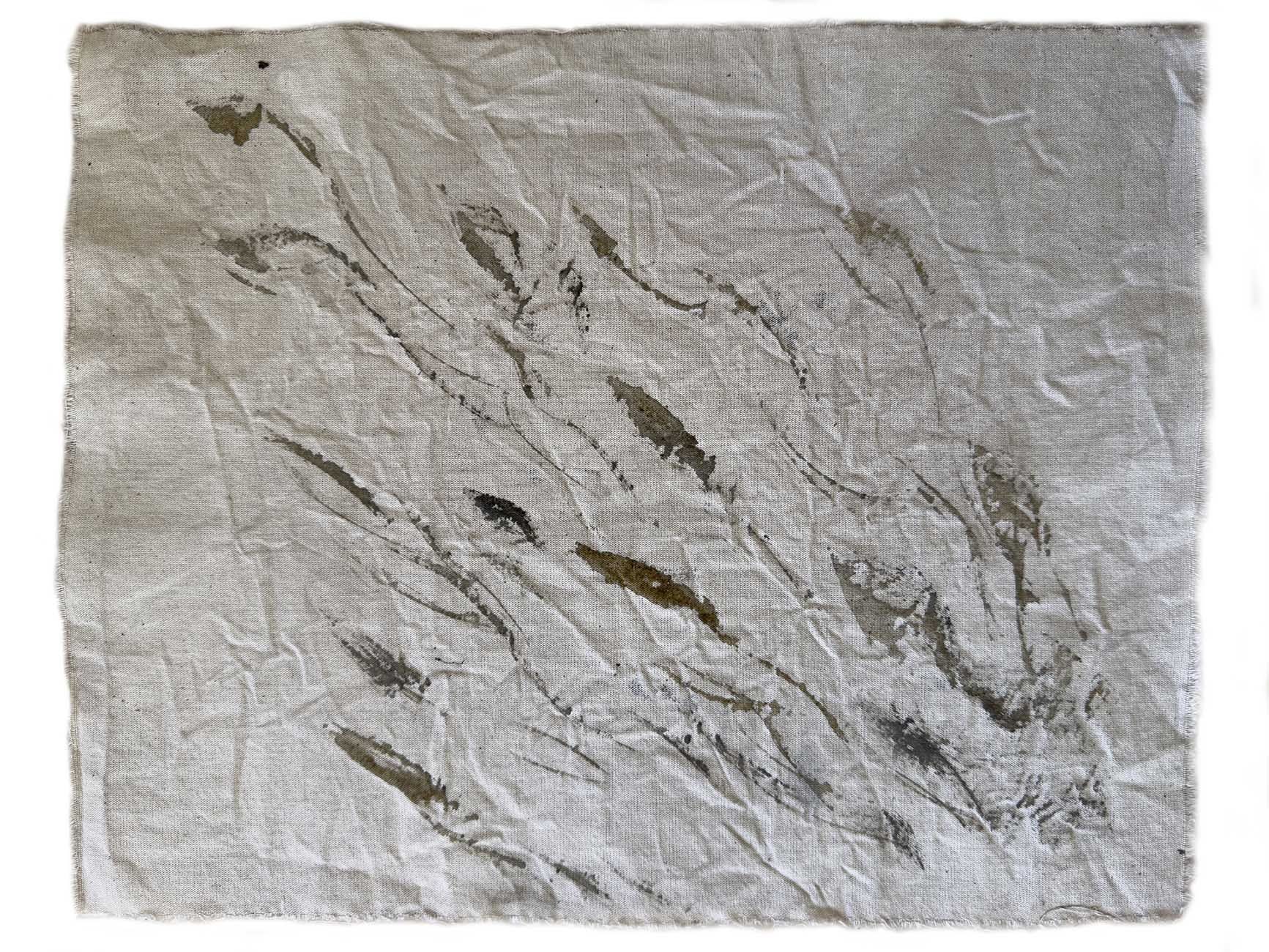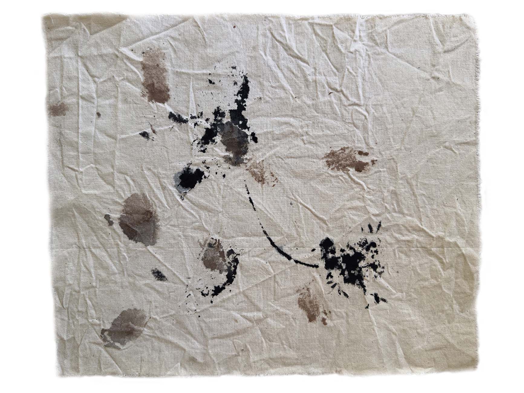Every step leaves a lasting mark, every decision, every act that identifies us as humans. Small graphics circumscribe the path that unites or separates those signs. All together it forms an incomplete journey, which will emerge and, in a faceless time, will be recognized by other walkers. The thick, untidy seams suture the parts, the wrinkles represent the plot, imperfection constitutes us. Our ability to get rid of the superfluous and consciously cohabit defines us.