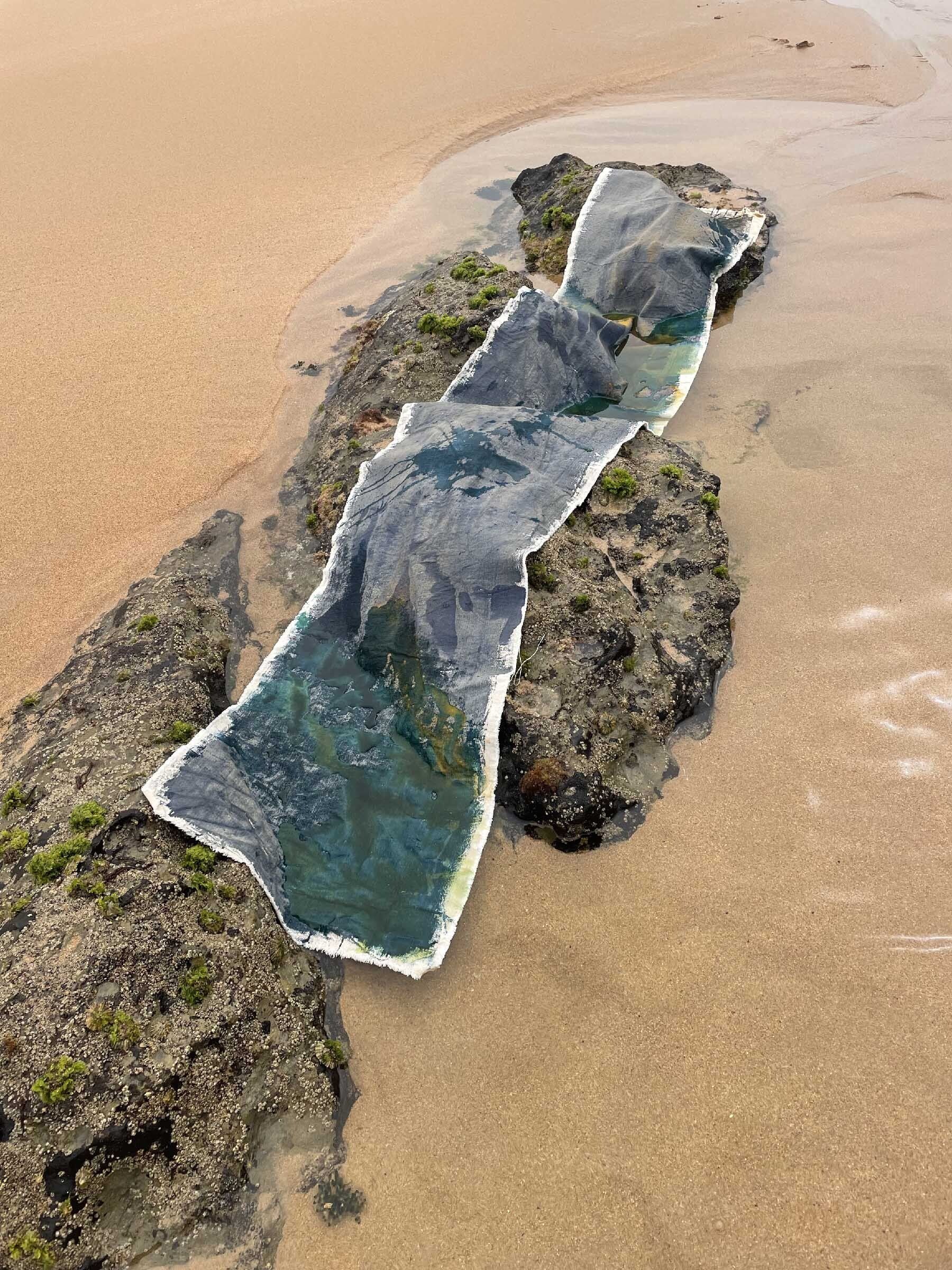 She regularly uses the photographic process of cyanotype for their deep blues and his link with climate’s element. Water issues are particularly represented in her artworks.