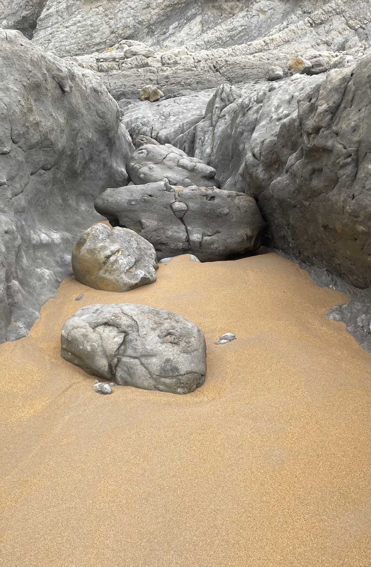Suite à la visite de la grotte de Las Monedas, j’ai été envahie d’une forte émotion, comme une révélation que j’ai pu comprendre en la transcrivant dans des écrits. Ensuite la pierre et l’eau se sont servis de moi pour livrer des images et actions dans ce paysage grandiose qu’ils façonnent ensemble.
