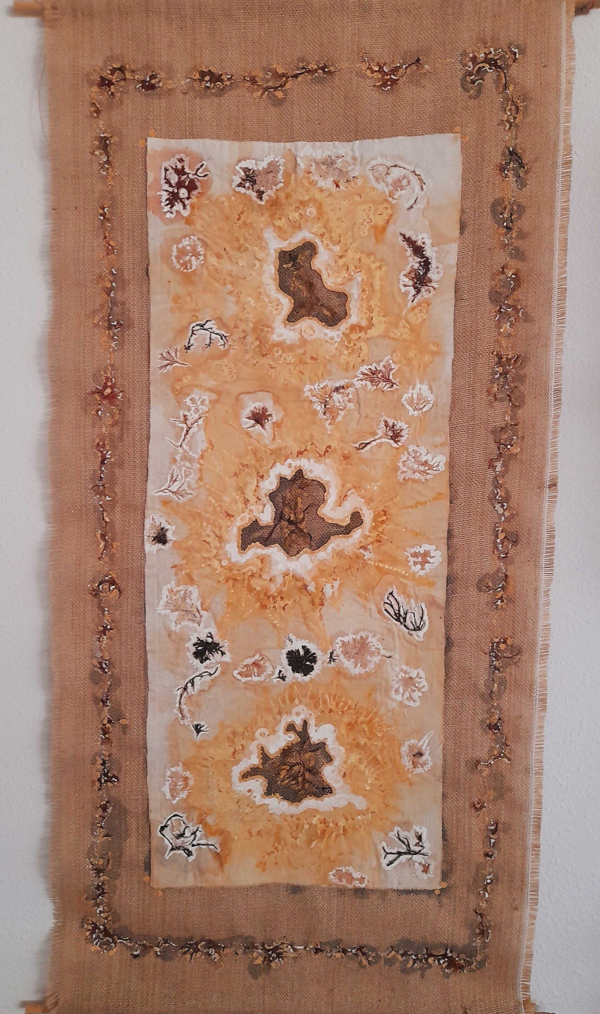 That magical realism that I invent, mixing techniques and vegetal materials, paper, fabrics, glues, nature. Sometimes the idea is born during the creative process.