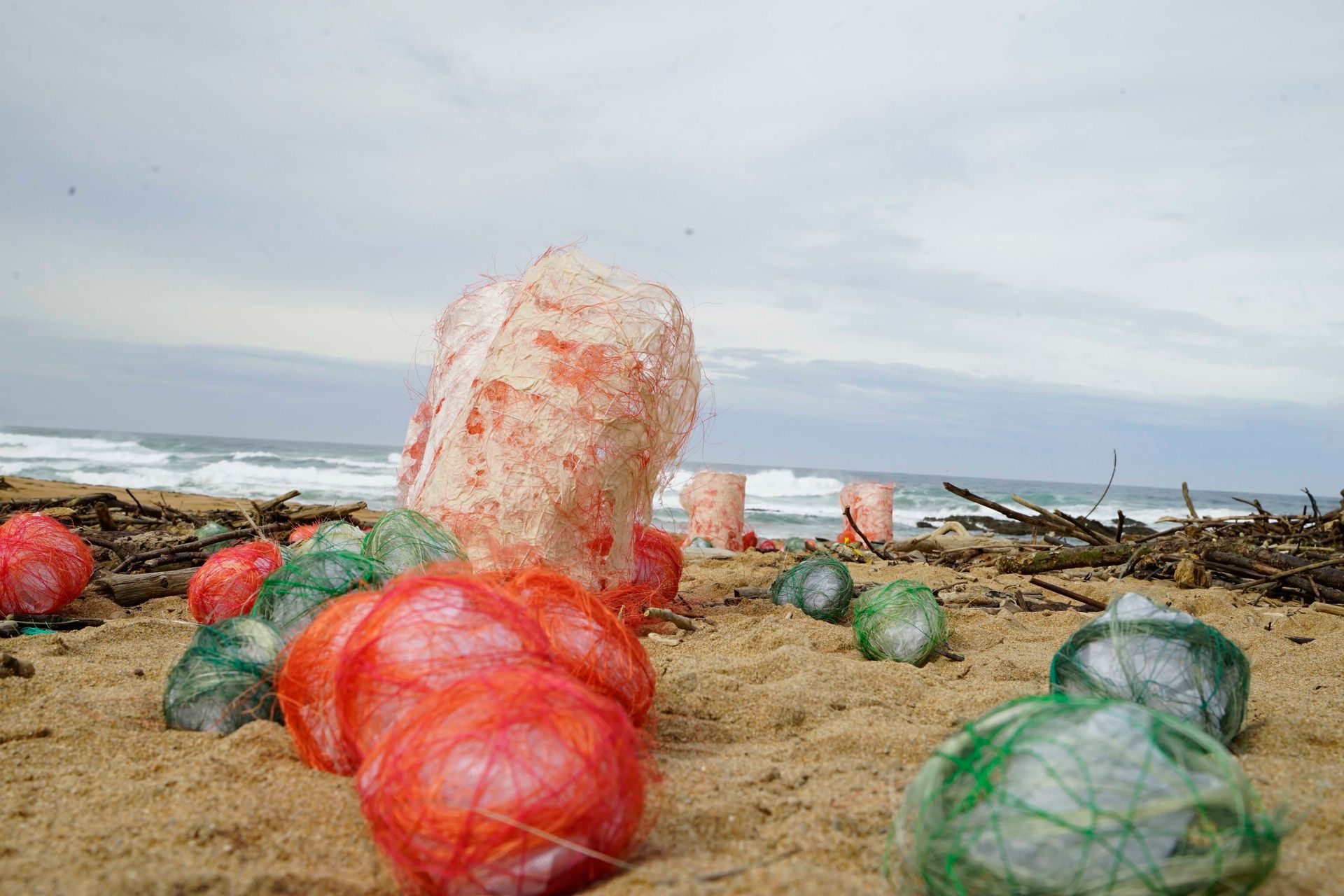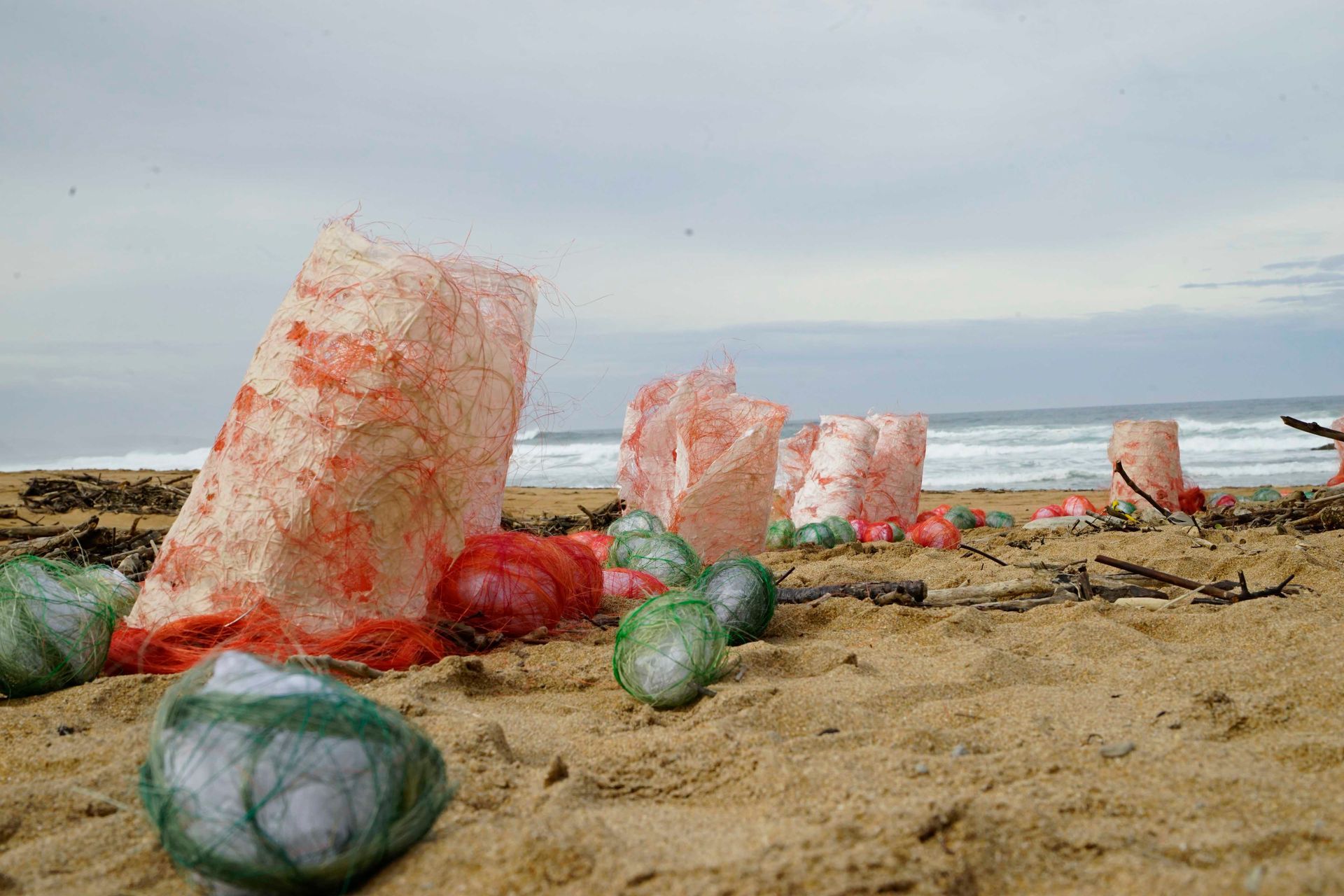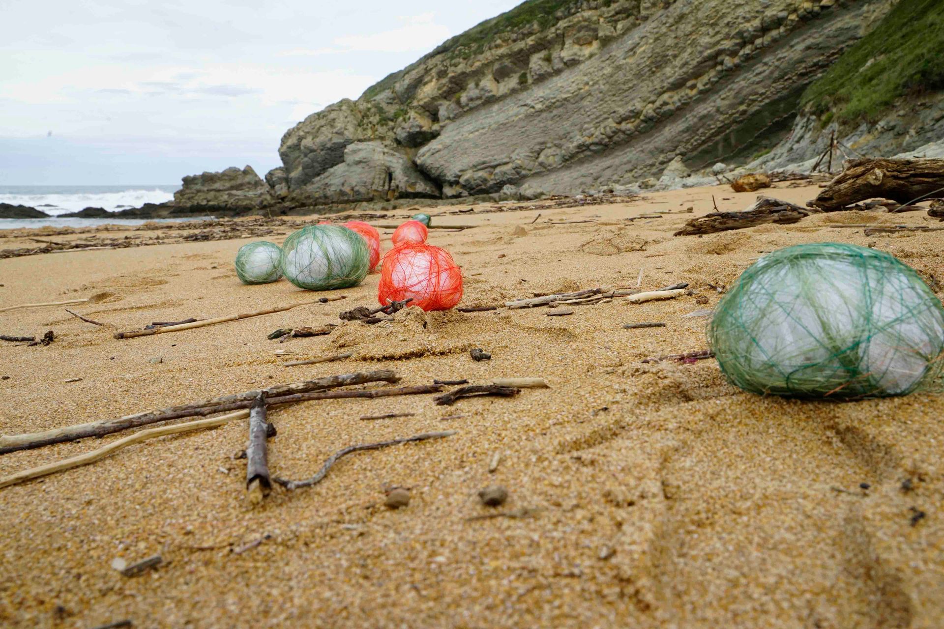 At Tagle beach, I installed cylinder shaped objects and balls as footprints.