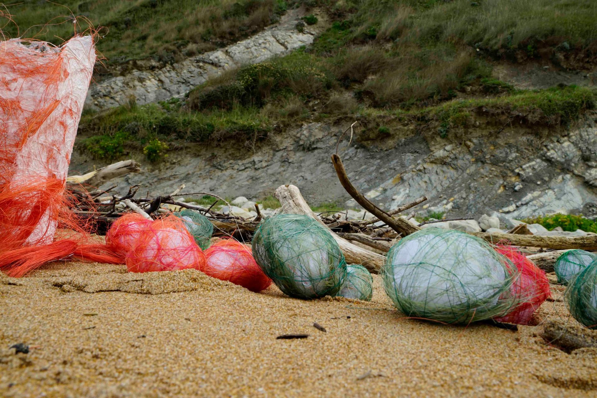 Rough twigs, carried by the waves