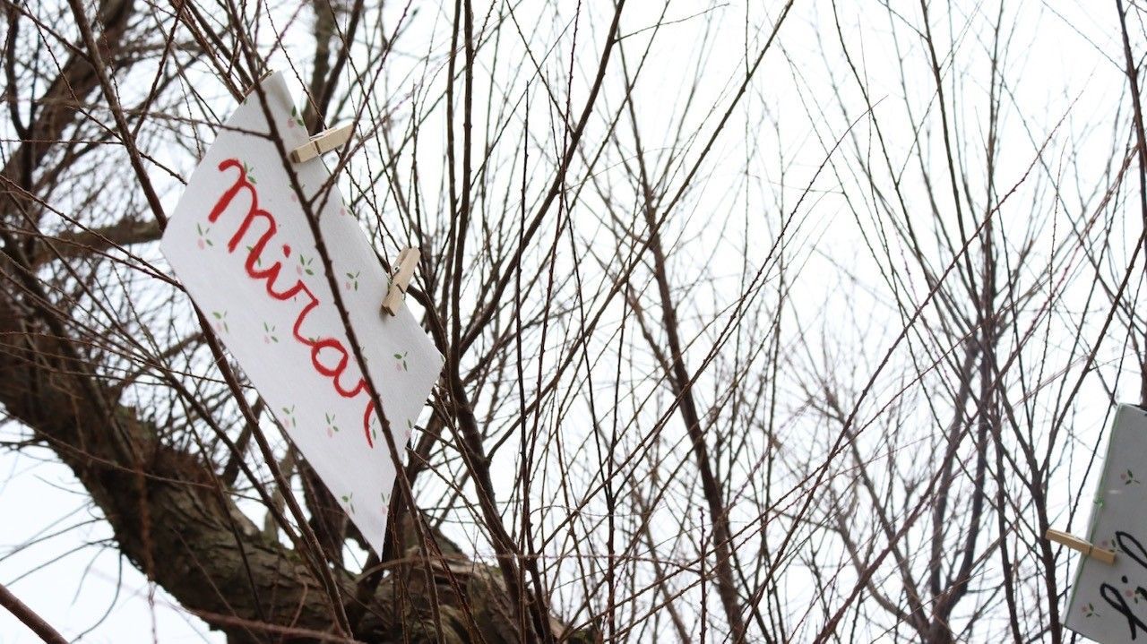 En lo alto, cuatro flores,