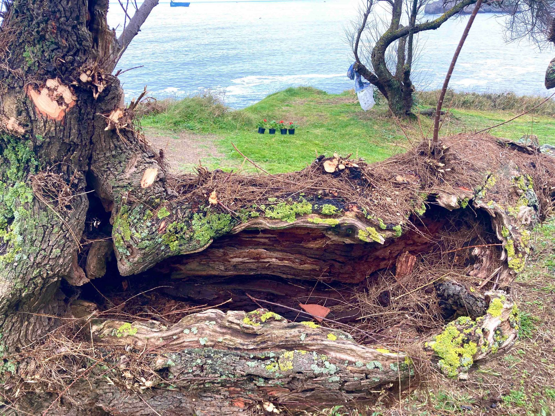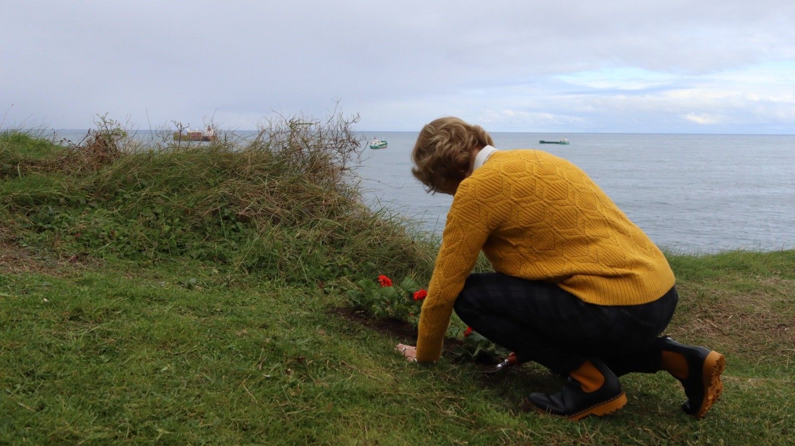 El sol comienza a calentar y levanta la bruma. Me llega una imagen: las ventanas de mi casa con las flores siempre de mi madre. El precipicio se torna en una gran ventana, un balcón al mar… ¿Y si planto allí flores? … la sensación de temor, el vértigo, la inquietud se atenúan entonces.