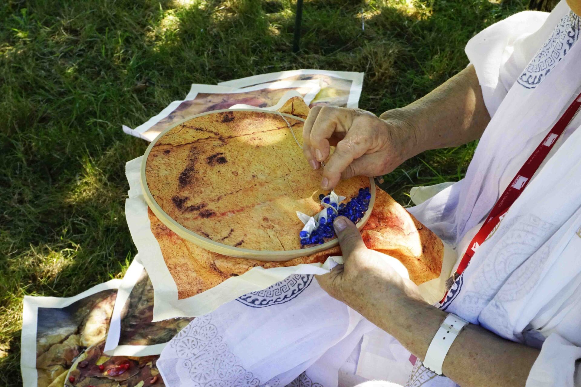 Recortes de cuero, cristales, huesitos pulidos, trozos de nácar pequeñas tallas de madera, esquirlas de sílex.