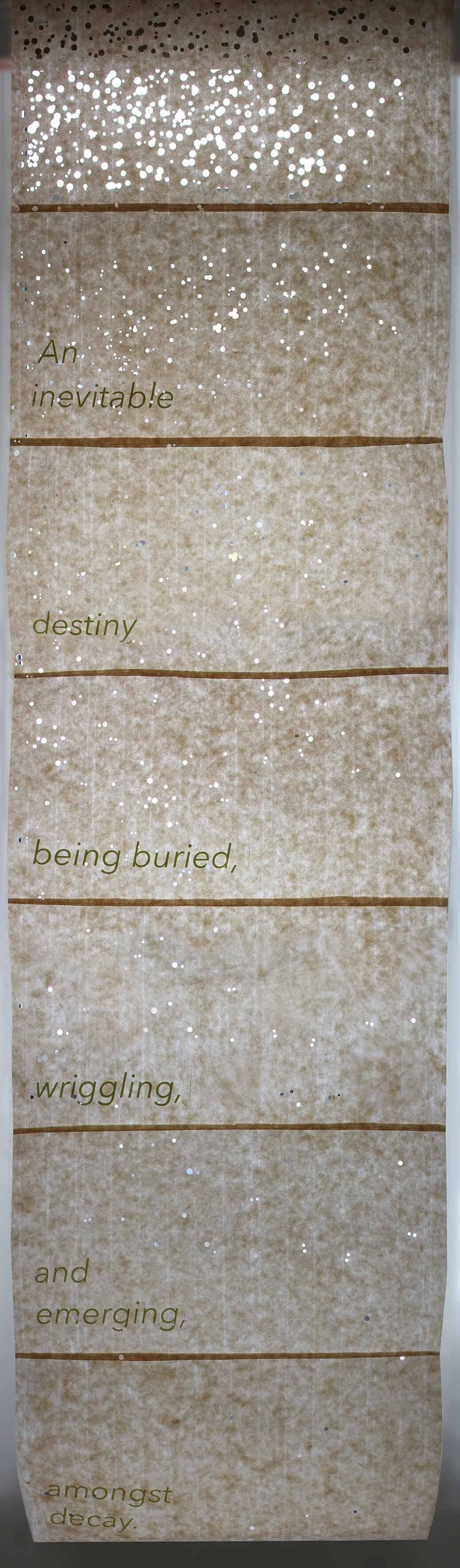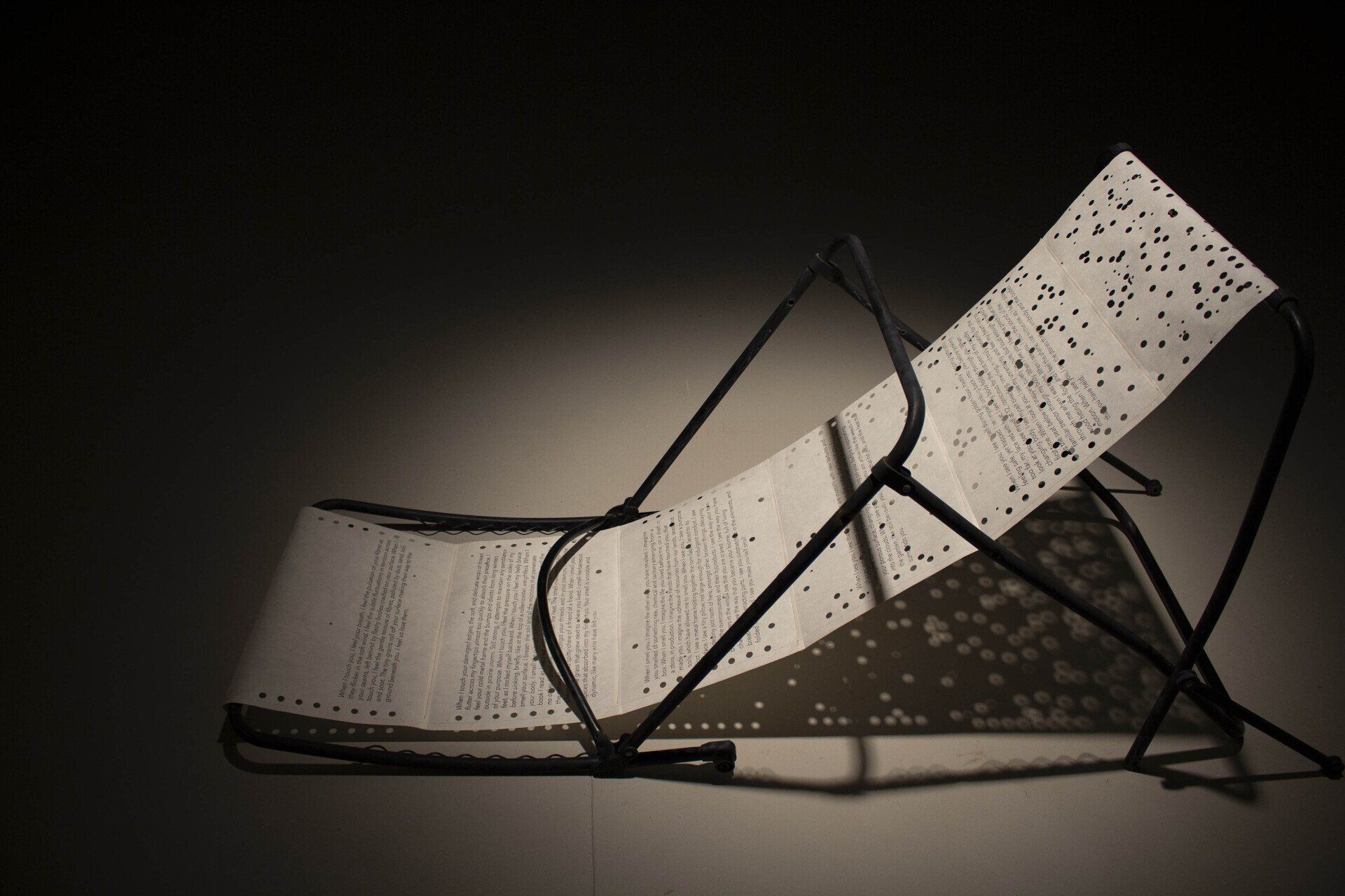 ¿Qué podría surgir de la experiencia de usar todos mis sentidos para interactuar con elementos que han perdido su propósito? ¿Podría existir la vida en los bordes rasgados de una silla o surgir en la boca de mi estómago? ¿Cómo es posible que un objeto creado con un propósito fugaz nunca desaparezca? ¿Cómo se puede hacer visible en la psique humana la actividad en curso de estas formas de vida? Una vez visible, ¿qué impacto podría tener eso?