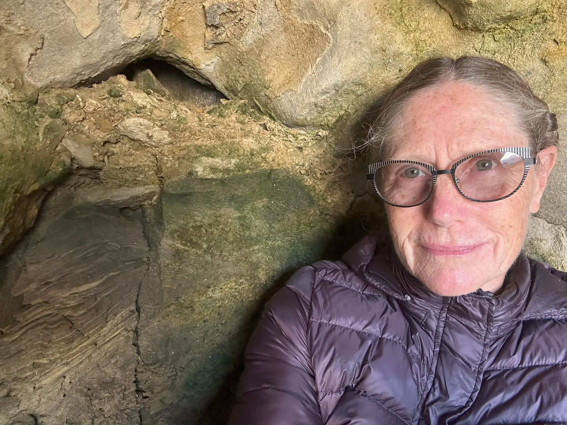 a través de grietas, hendiduras y aberturas de cuevas, retrocediendo en el tiempo.