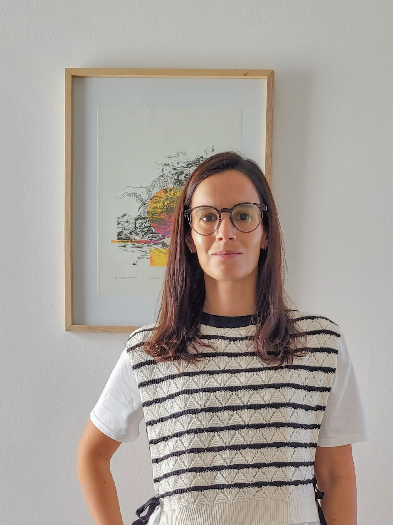 Es Técnica y Profesora en Artes Visuales con orientación en Grabado.