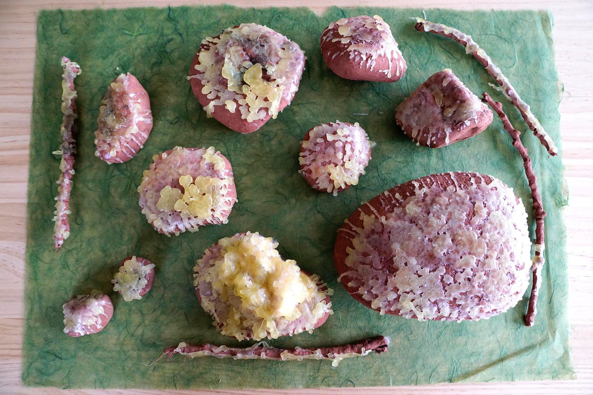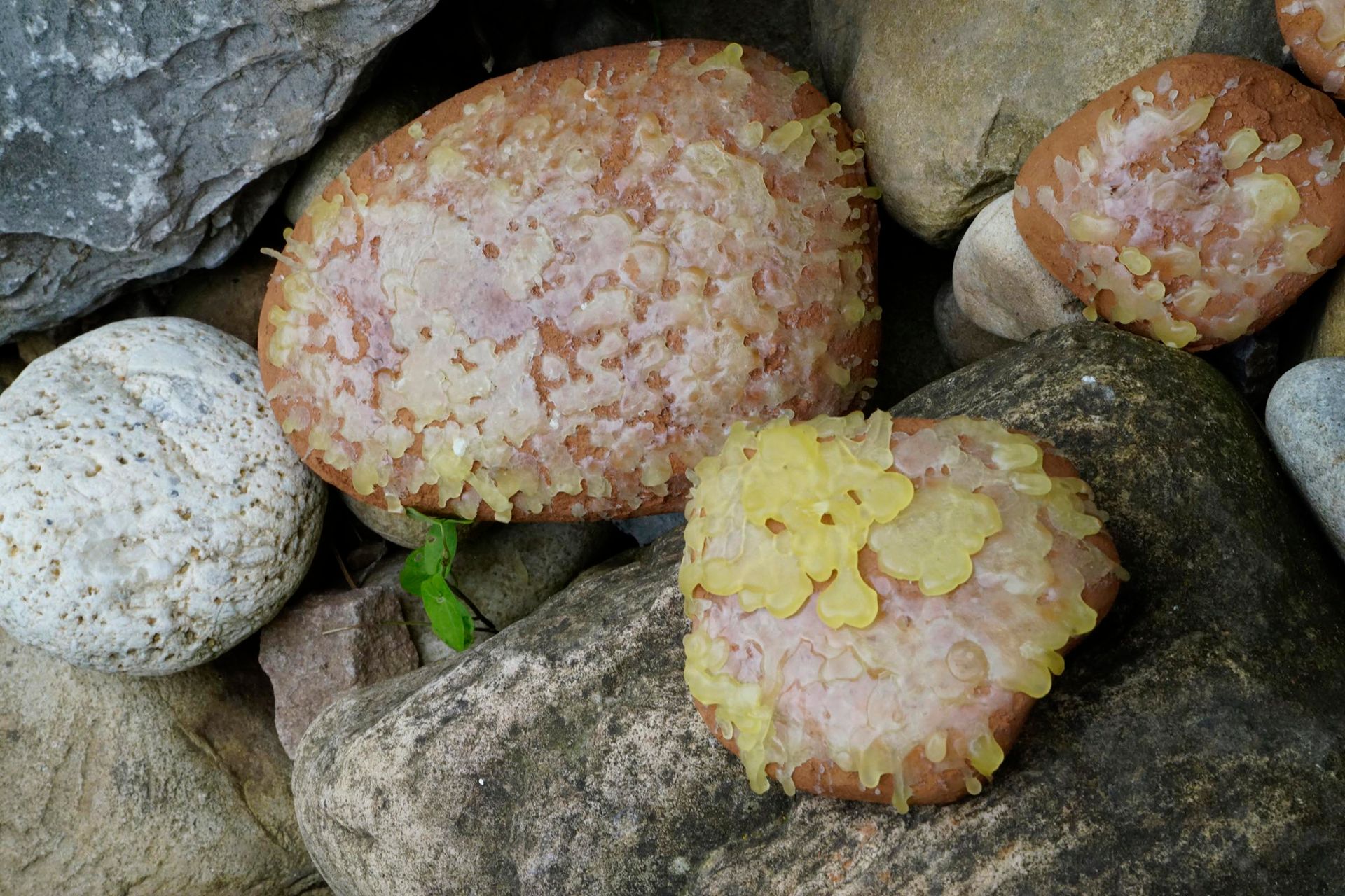 En el proceso de creación de la obra, me sumergí en mi naturaleza interior, permitiendo que mi imaginación y curiosidad guiaran el trabajo. Fue una experiencia profundamente espiritual que me hizo sentir conectada e iluminada. Trabajar en las piedras se convirtió en un ritual espiritual, mientras usaba velas y capas de cera repetidamente sobre las piedras. A lo largo de este proceso, contemplé y pensé en las innumerables personas que habían tocado estas piedras a lo largo de los siglos y reflexioné sobre la gran cantidad de historia que llevaban consigo.