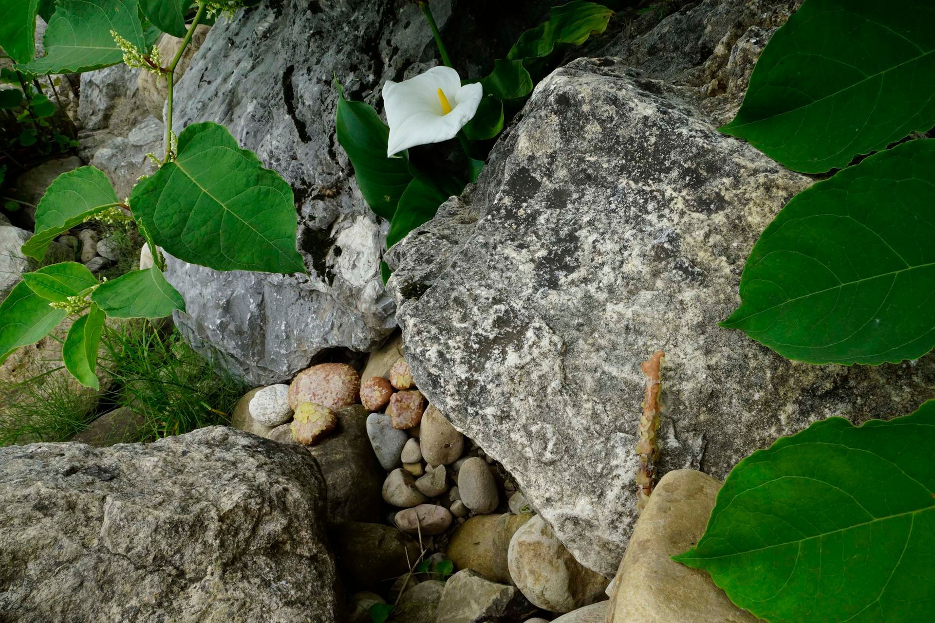 Al concluir el trabajo sobre las piedras, regresé al parque, llevando las piedras conmigo. Buscando orientación, miré hacia el cielo y pedí instrucciones sobre dónde colocarlas. Como en respuesta, descubrí el lugar perfecto: un espacio ubicado entre dos grandes rocas. Allí me esperaba una vista deslumbrante: una flor blanca, que simbolizaba la pureza. Resonó profundamente, como si fuera la señal que había estado buscando todo el tiempo. En ese momento, sentí una profunda sensación de plenitud y satisfacción, sabiendo que mis deseos se habían cumplido.