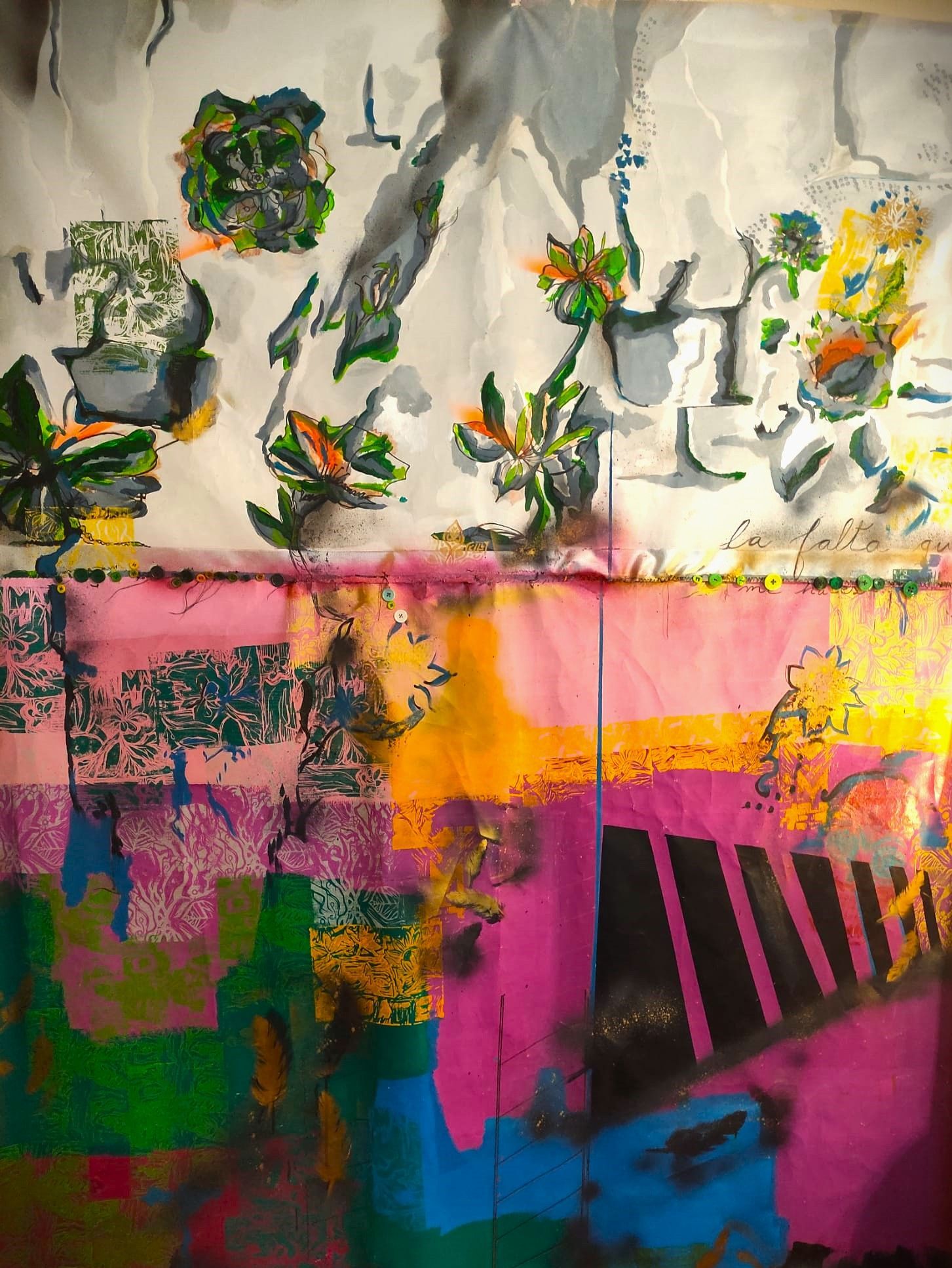 Como artista visual (Mariellage), realizo trabajos multidisciplinarios, donde construyo mi identidad a partir de fragmentos. Como en un diario íntimo mis obras van desde la palabra a lo visual, plasmando mis sentimientos (lámparas de luz, intervenciones en vinilo, arte pictórico, instalaciones, collage en tela y en papel).