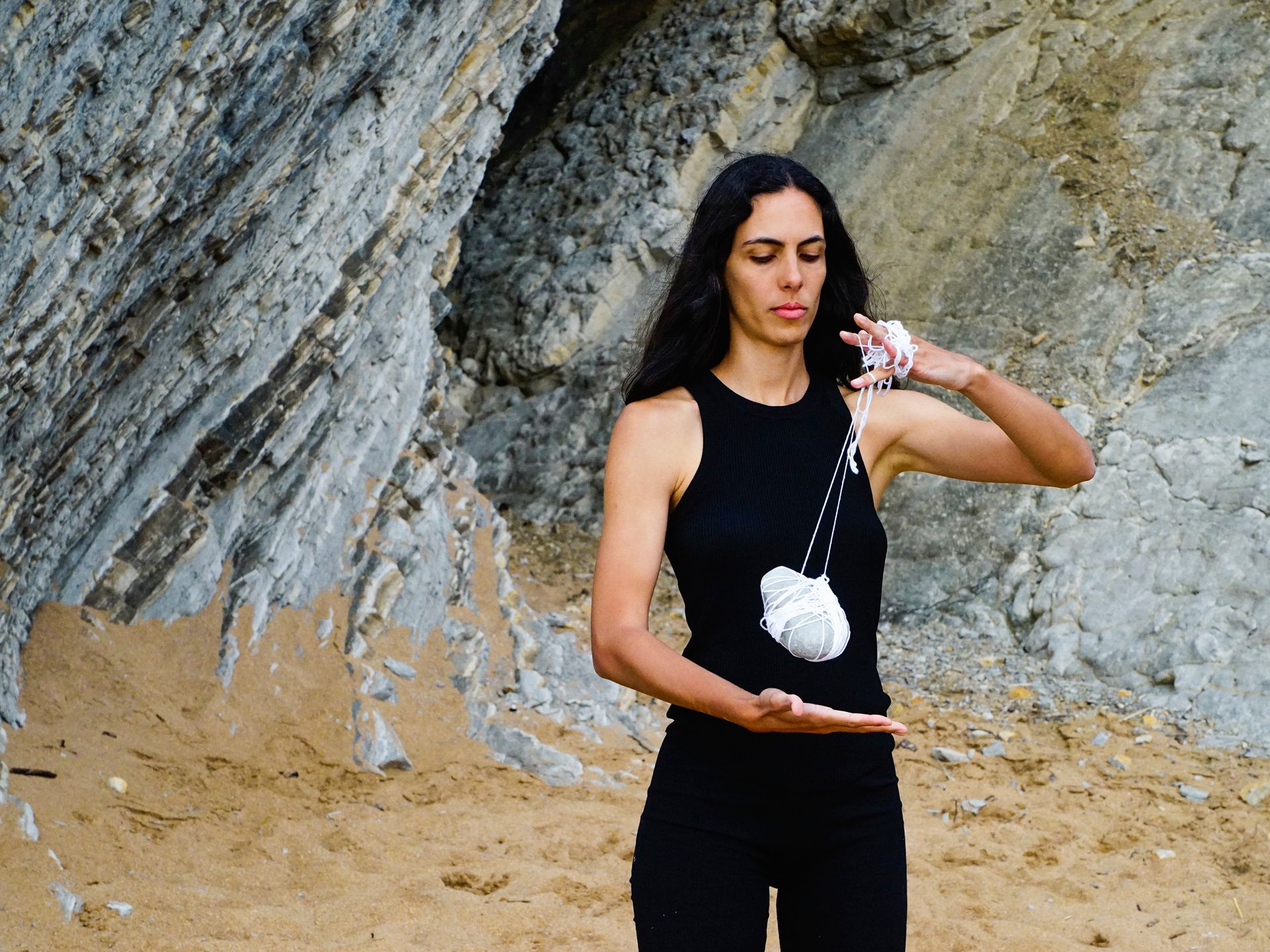 El proyecto consiste en una performance y un video de de dos canales que presentan un homenaje a la montaña a través de un ritual de gratitud por ese lugar de claridad sin luz dentro de mí al que la montaña le habla sin palabras, invitándome a despertar. Adentrarme en la montaña me muestra la transición de la resistencia a la rendición, del caos al silencio, del peso a la ligereza. Habitando la montaña descubrí como habitarme a mí misma. El vídeo plantea un encuentro, un entrelazamiento entre la montaña y yo a través de en una danza de iniciación a la contemplación y la entrega.
