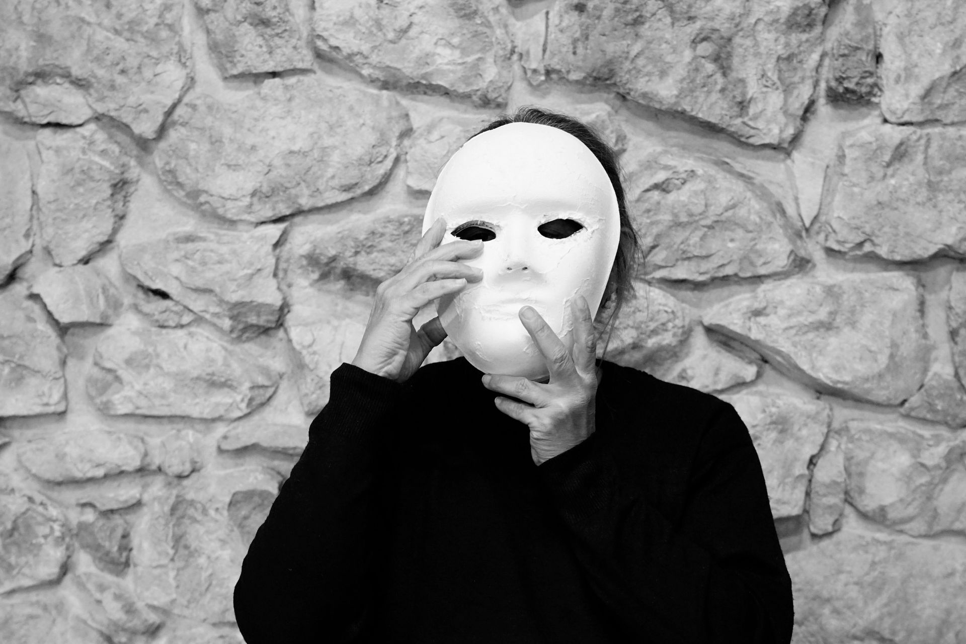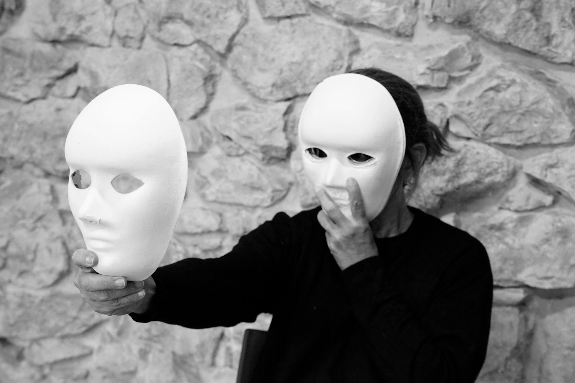 Capa tras capa, cubrí el dolor, encapsulándolo en máscaras. Más profundo y más fuerte cada vez. Me convencí a mí misma de que era solo para protección. Pero mi alma se durmió. Silencié mis sentimientos, y poco a poco me hundí en una profunda soledad. Otra capa, otra máscara. Oculté traumas, oculté miedos. Atrapada y desconcertada, continué. Desaparecí, ya no me podía ver. Yo era invisible. Tantos años y demasiadas capas. Tomé una respiración profunda. Me armé de valor y comencé lentamente. Con nerviosismo, comencé a quitarme las máscaras una por una. El dolor subió a la superficie. Mis manos temblaron.
