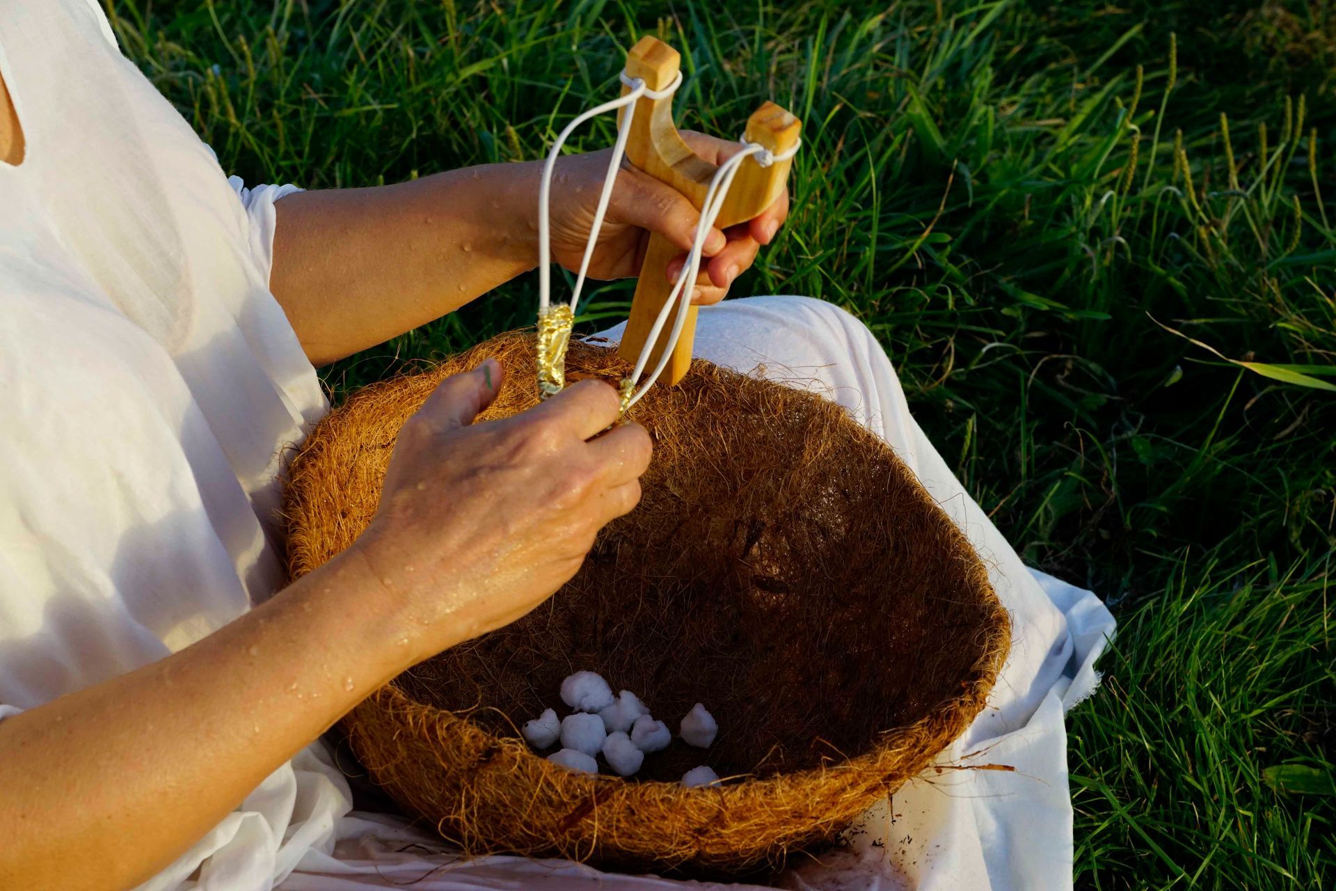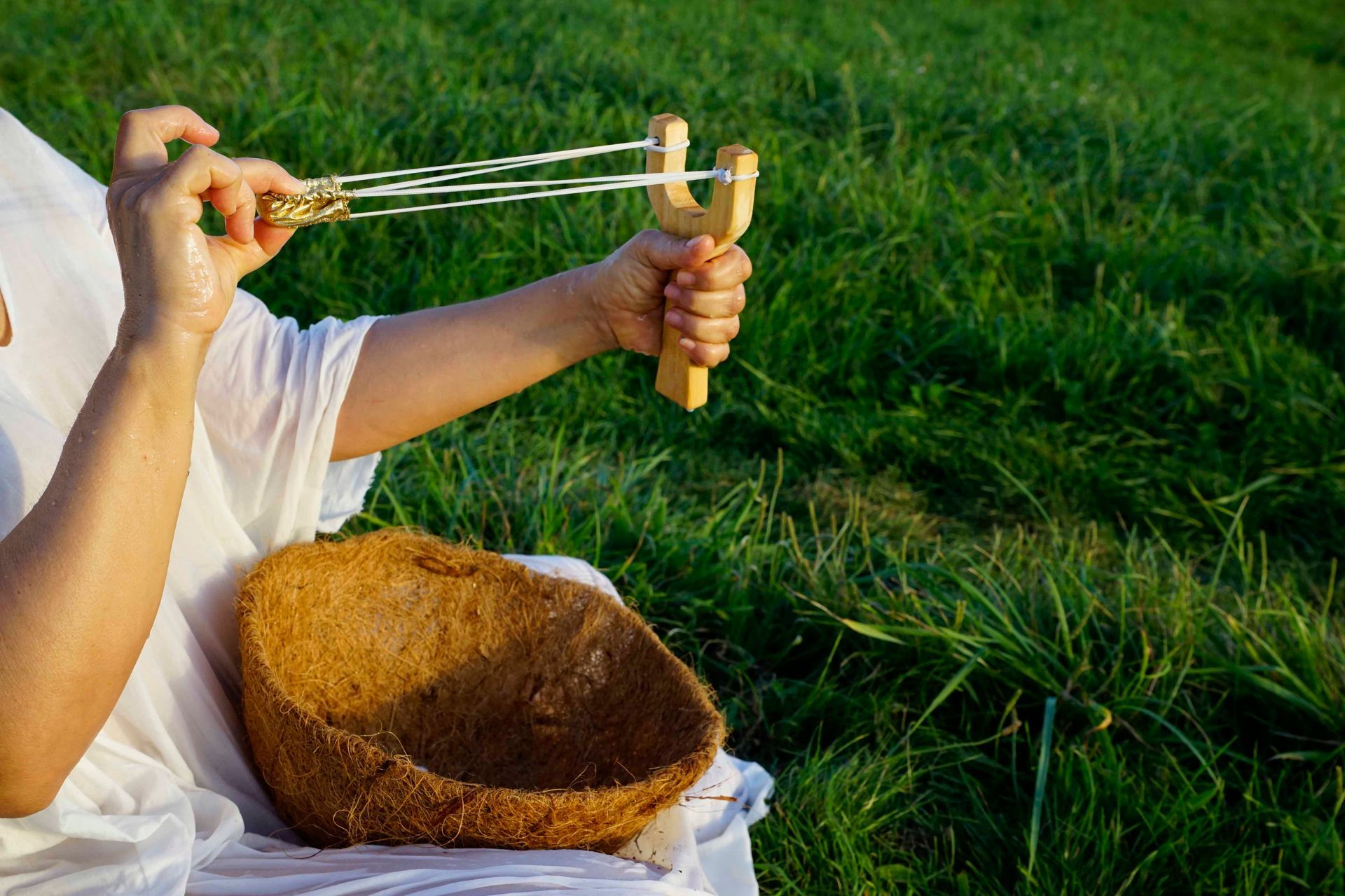 Colóquelas de a una en la gomera y arrójelas con fuerza.