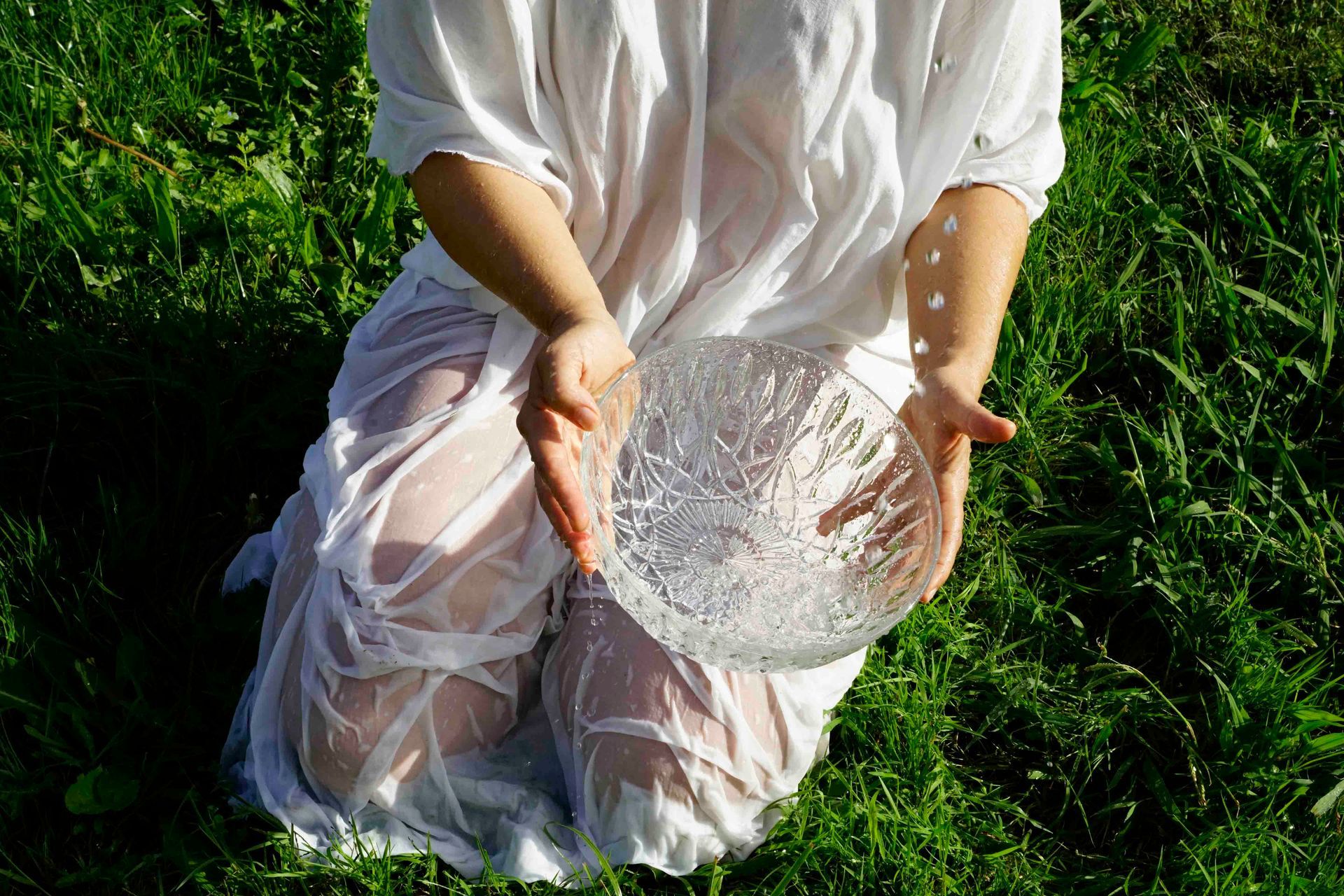 Embeba con sus lágrimas pequeñas bolitas de algodón.