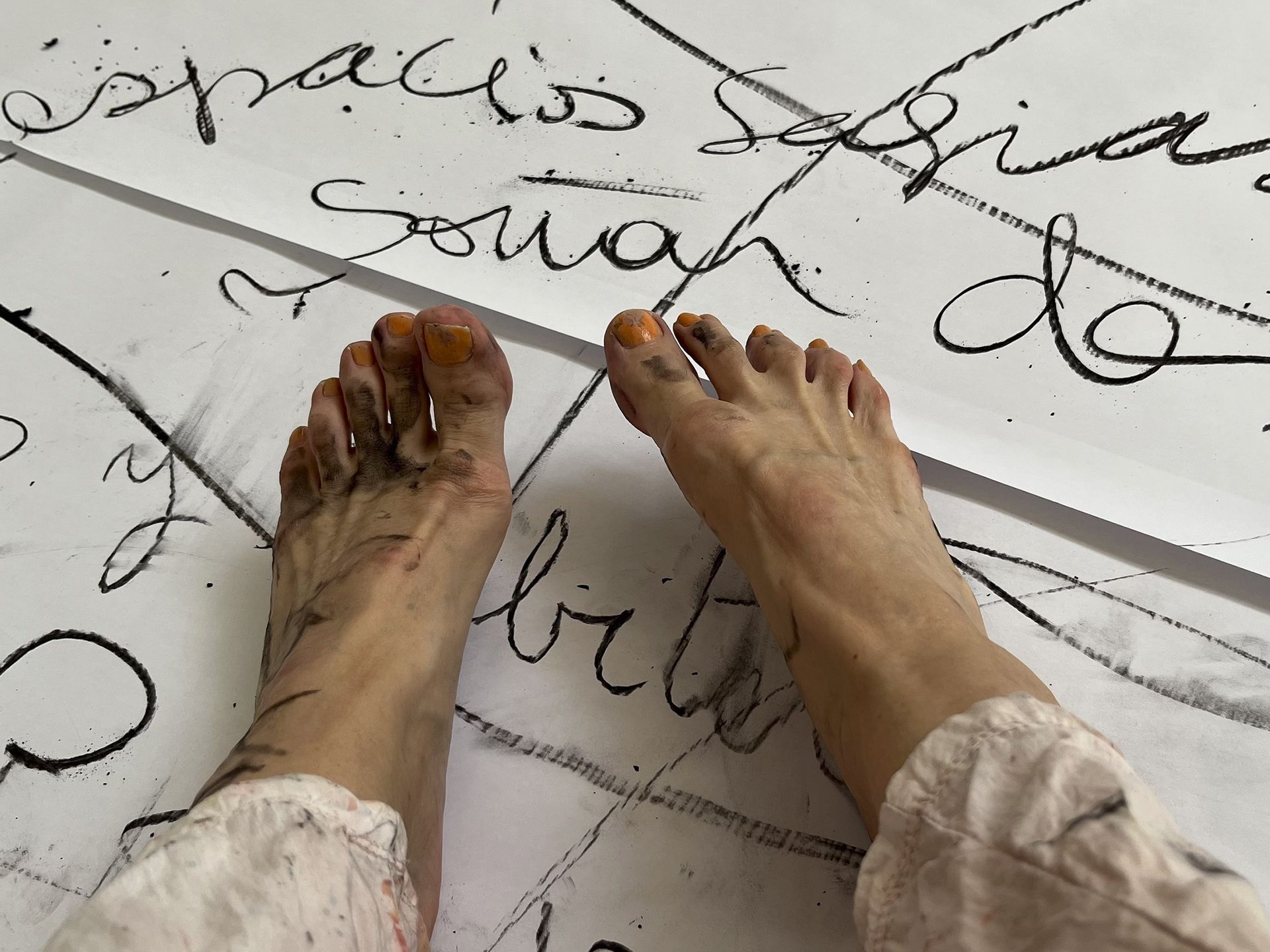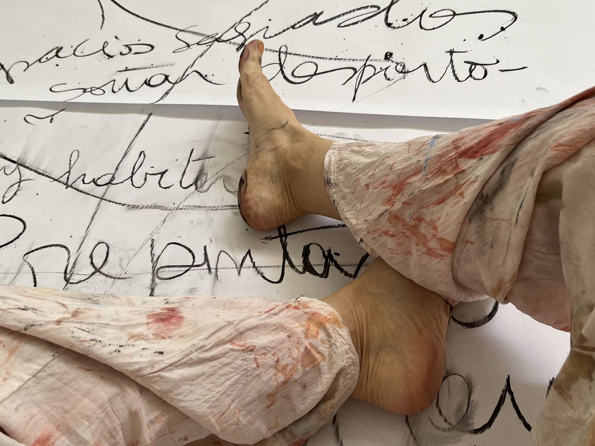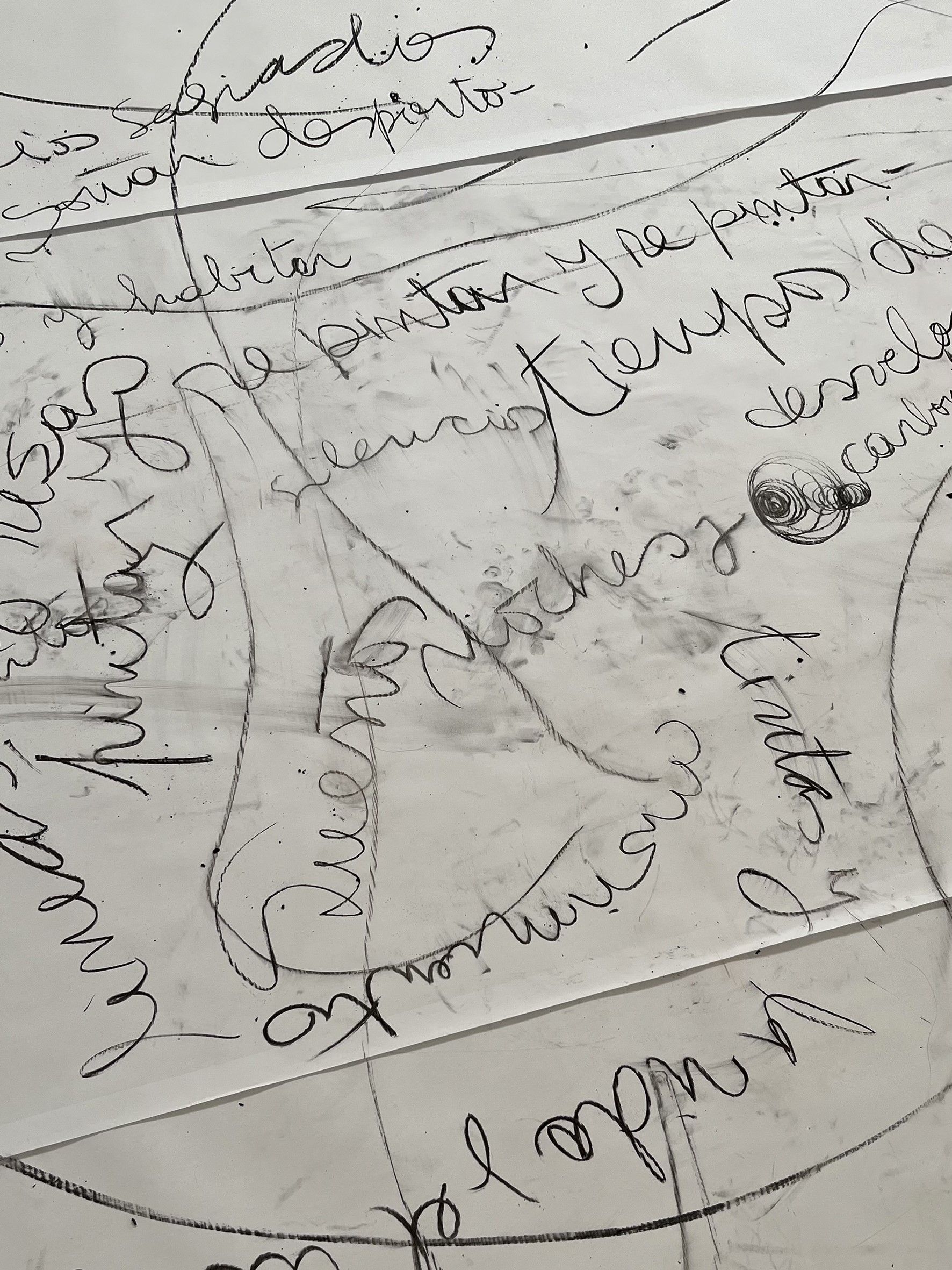 Surge primero el movimiento que luego se expresa a través de colores y textos con carbonillas.