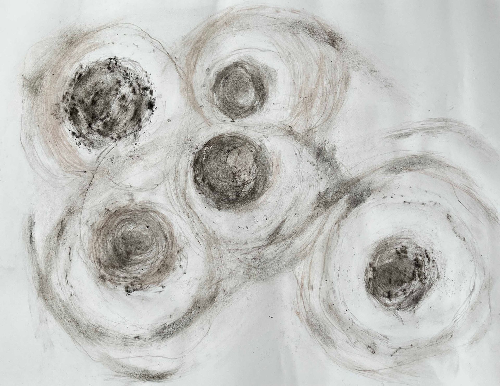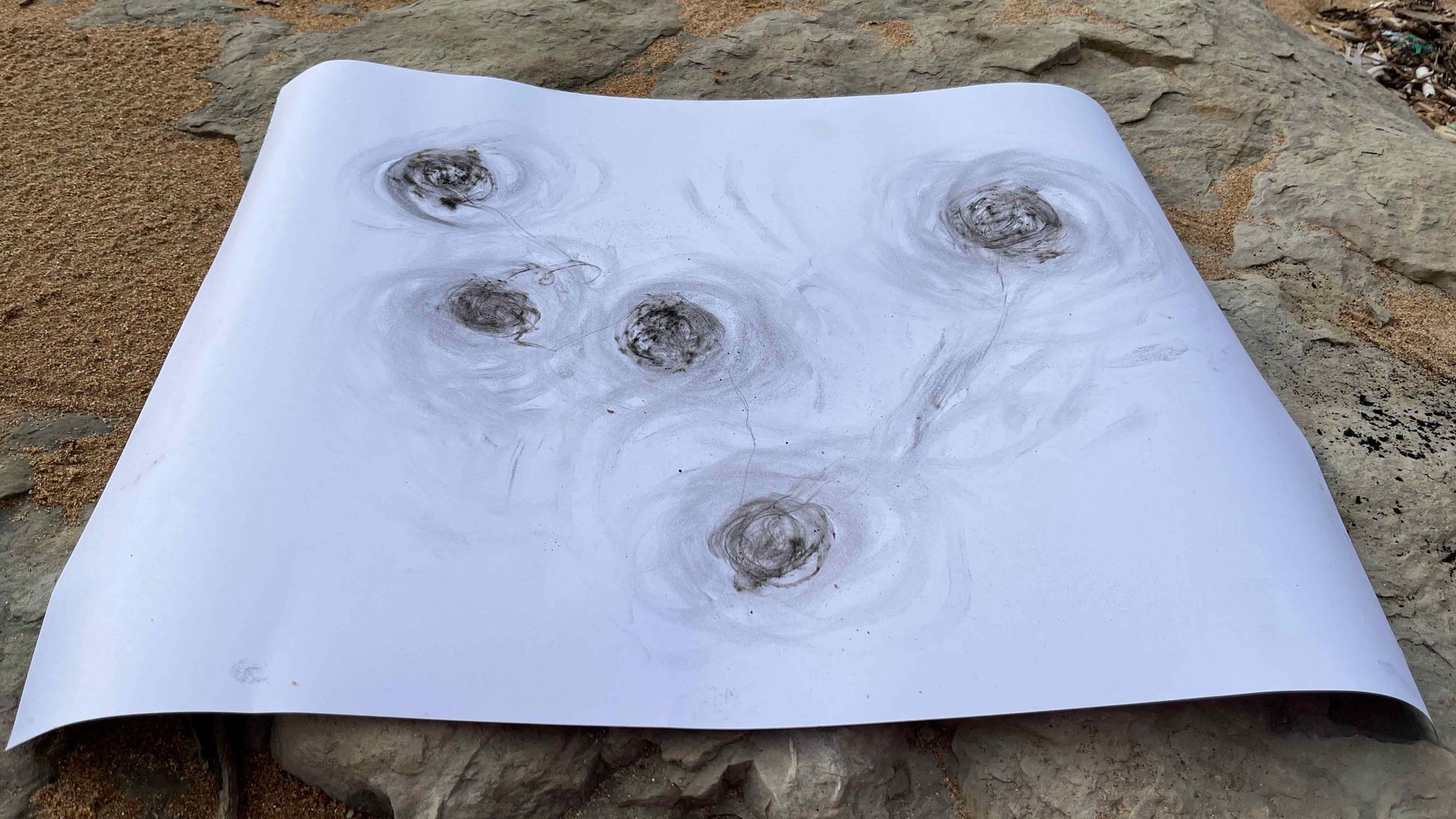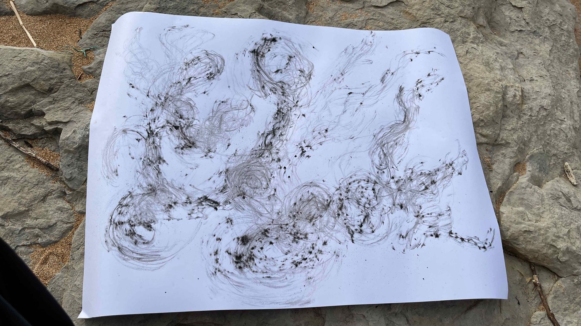 Surge primero el movimiento que luego se expresa a través de colores y textos con carbonillas.