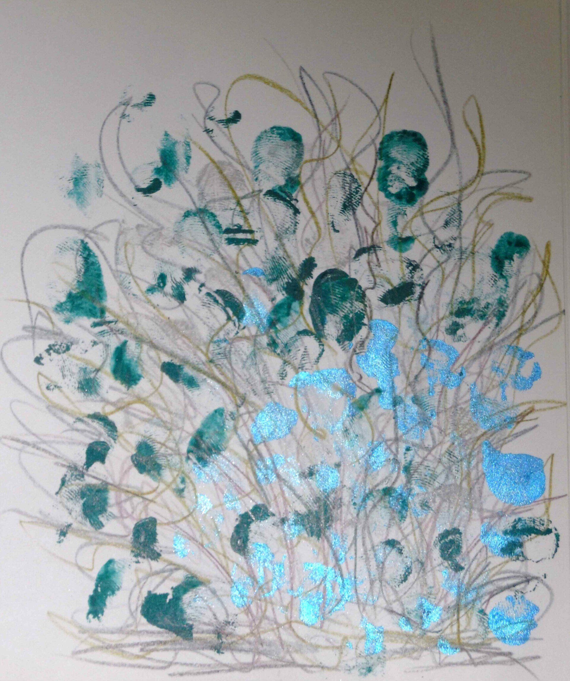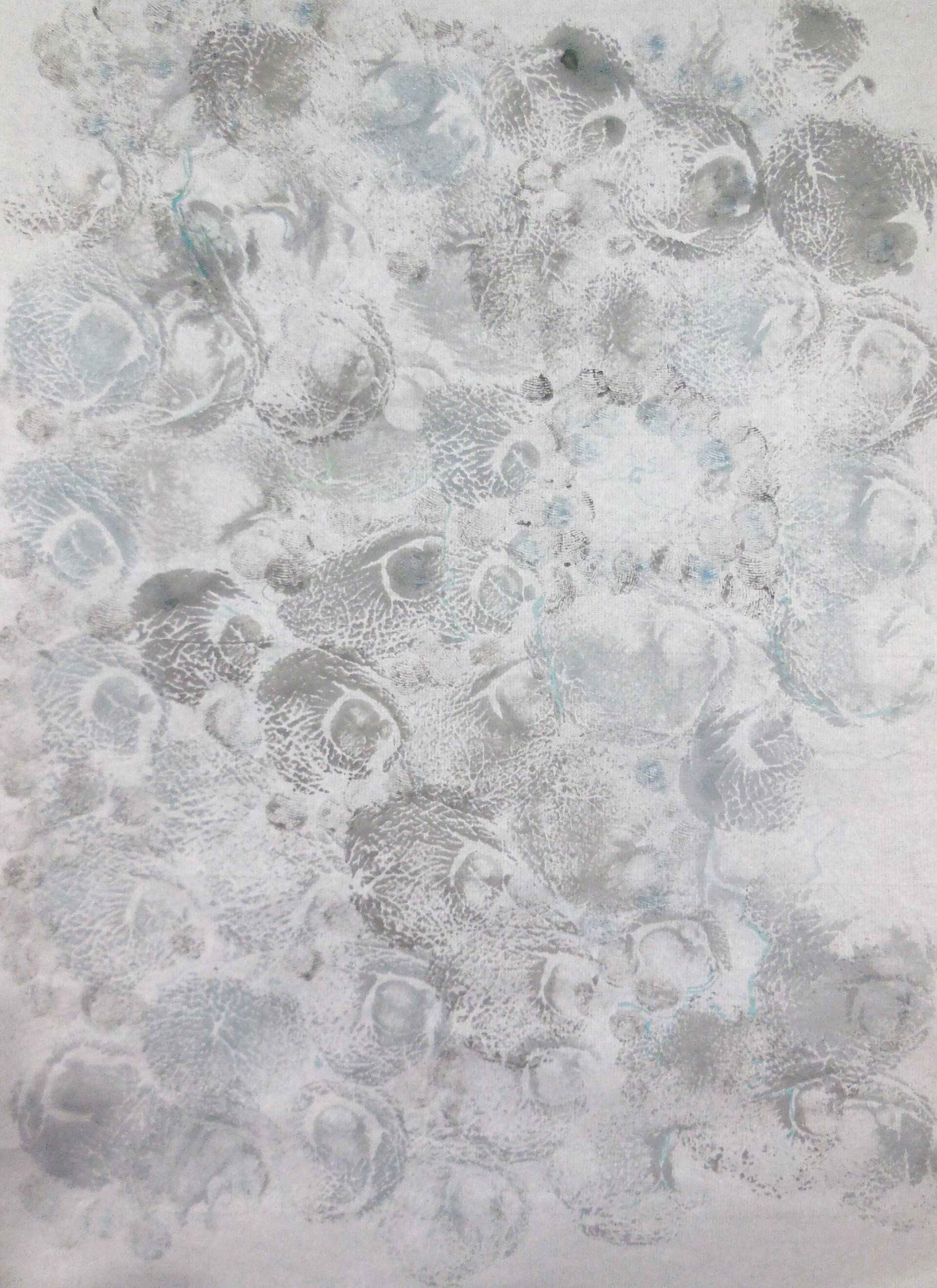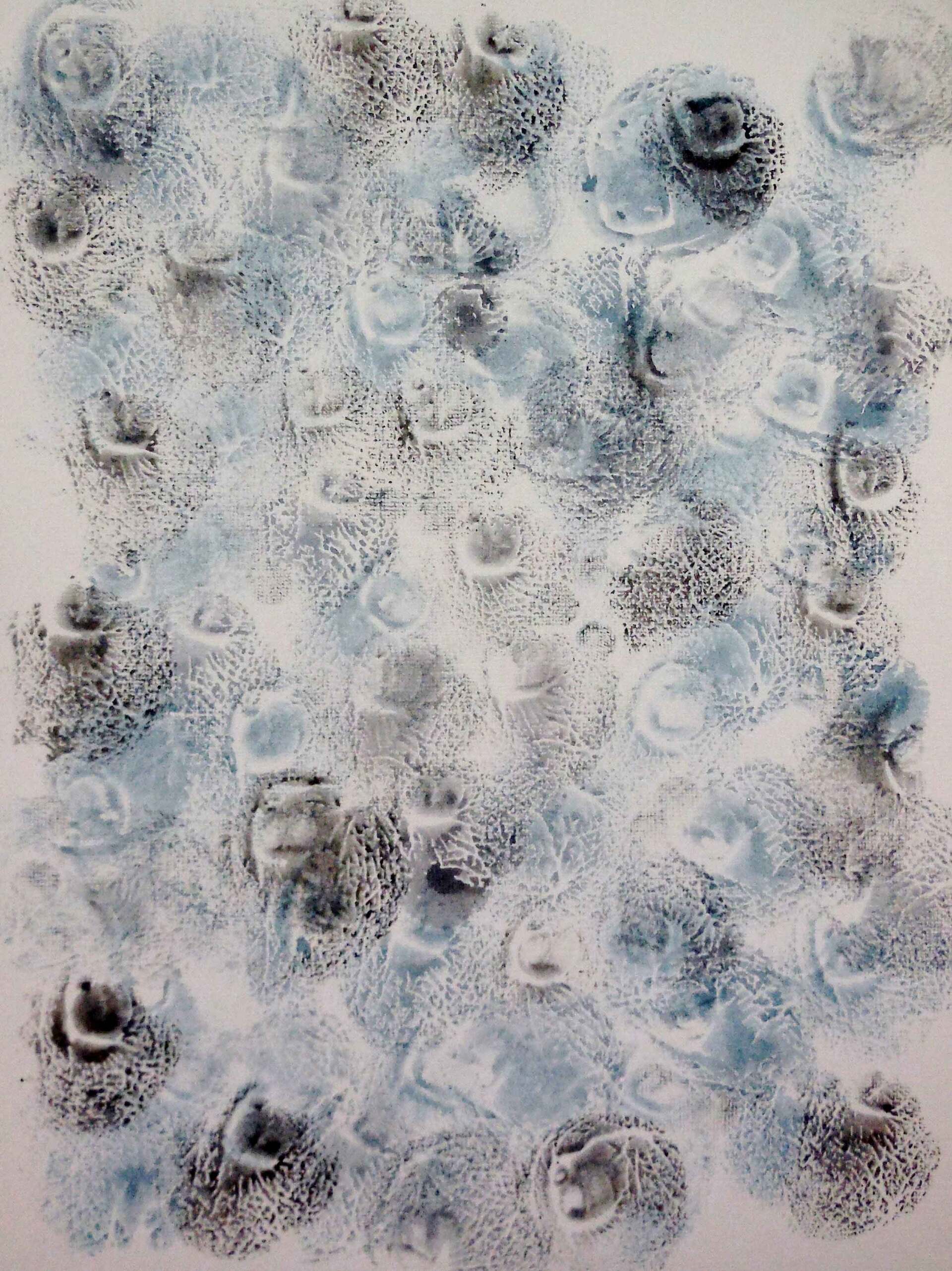 Vestigios que se confunden con marcas en la naturaleza mimetizándose. Juegos de formas se repiten simultáneamente, vibran juntas, convirtiéndonos en un todo.