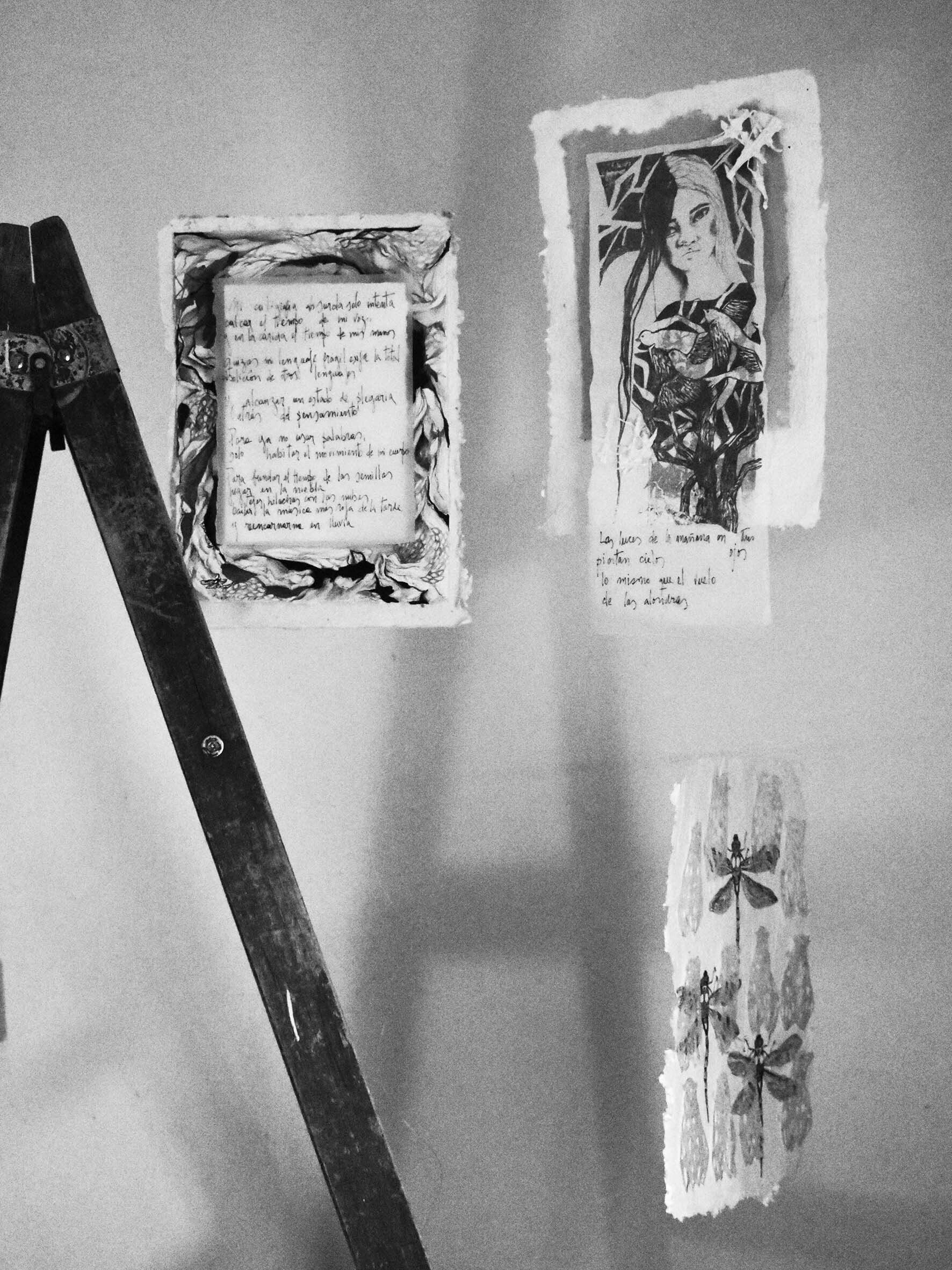 Dibujos, tintas, litografías, collage, papeles artesanales, todo me sirvió para esta aventura.