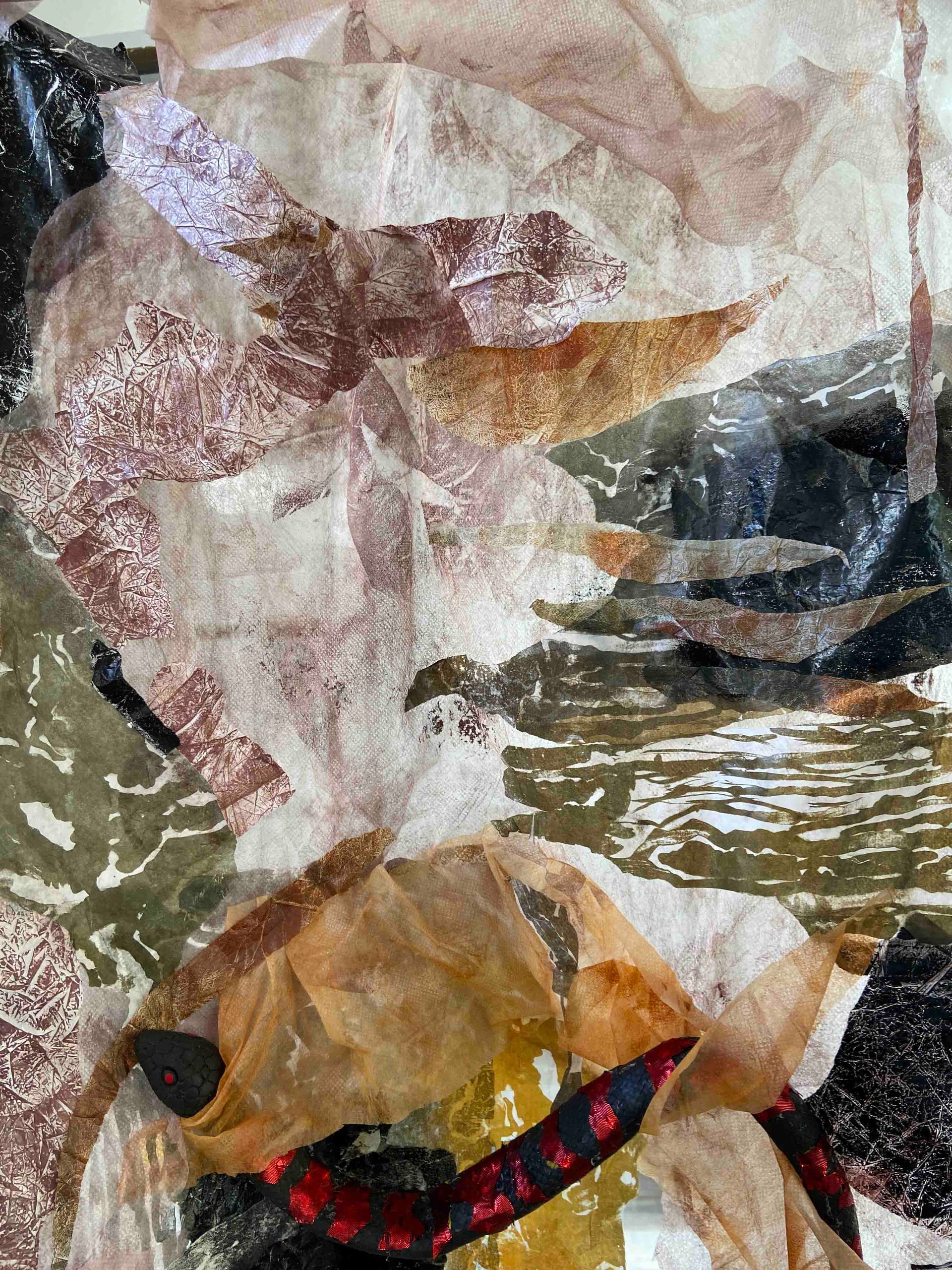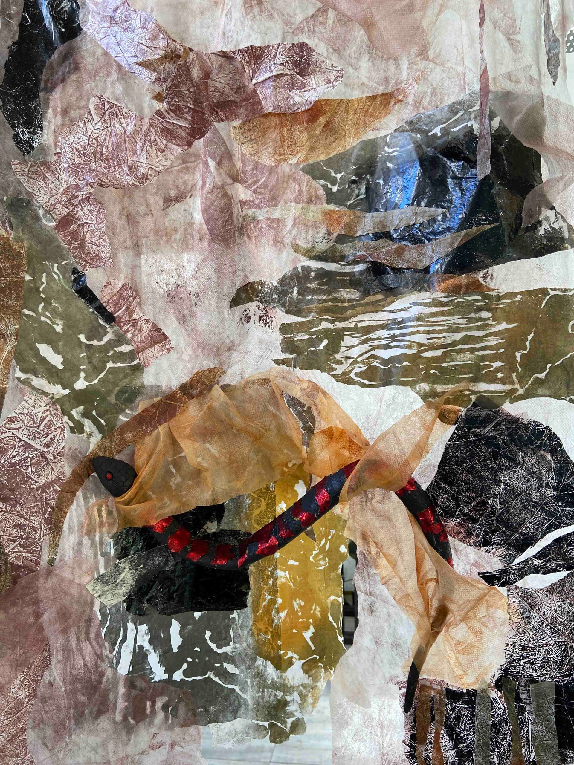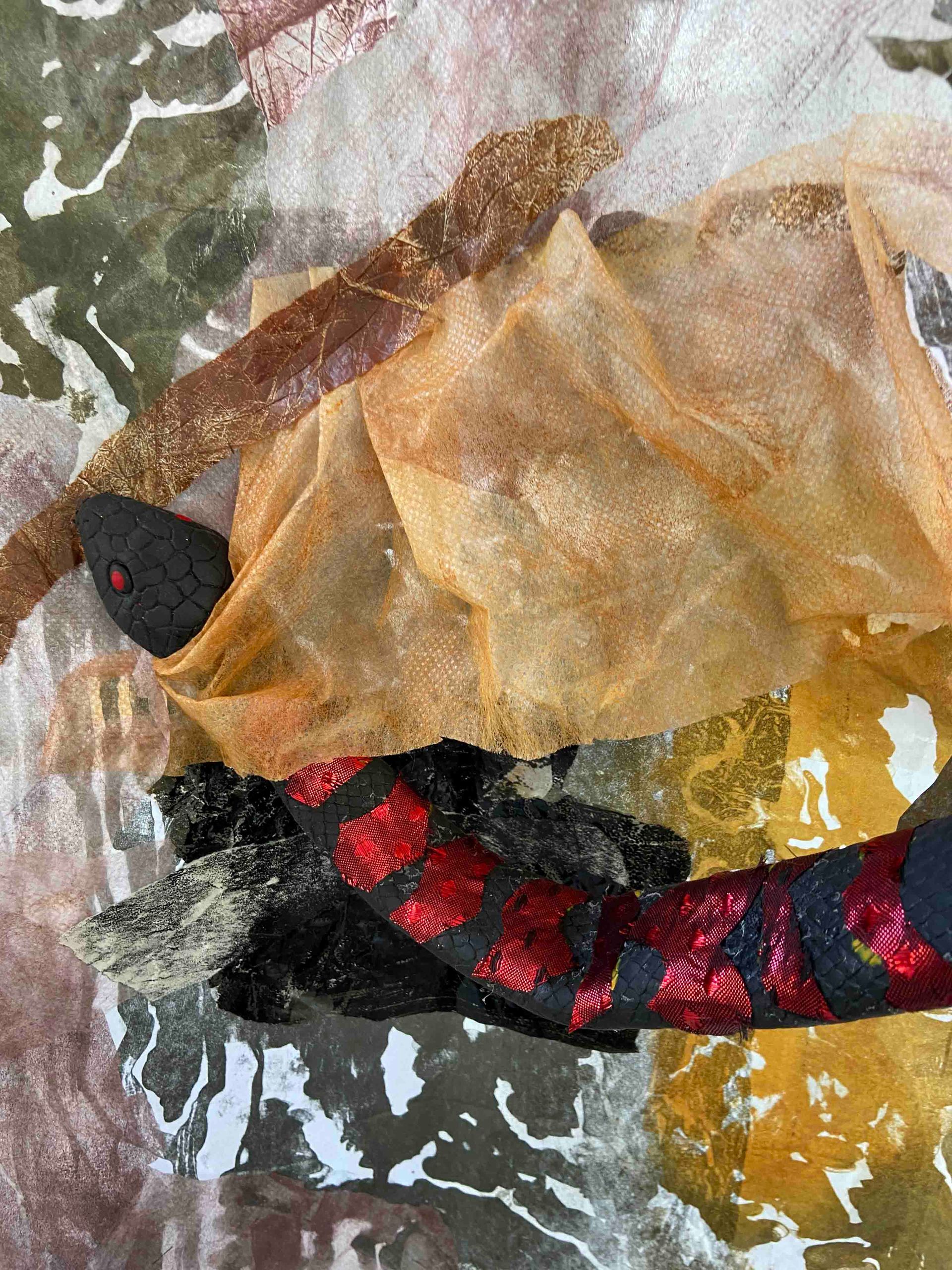 Trabajé construyendo mi propia serpiente, fea, muy fea, como son los miedos, pero llena de piedras brillantes.
