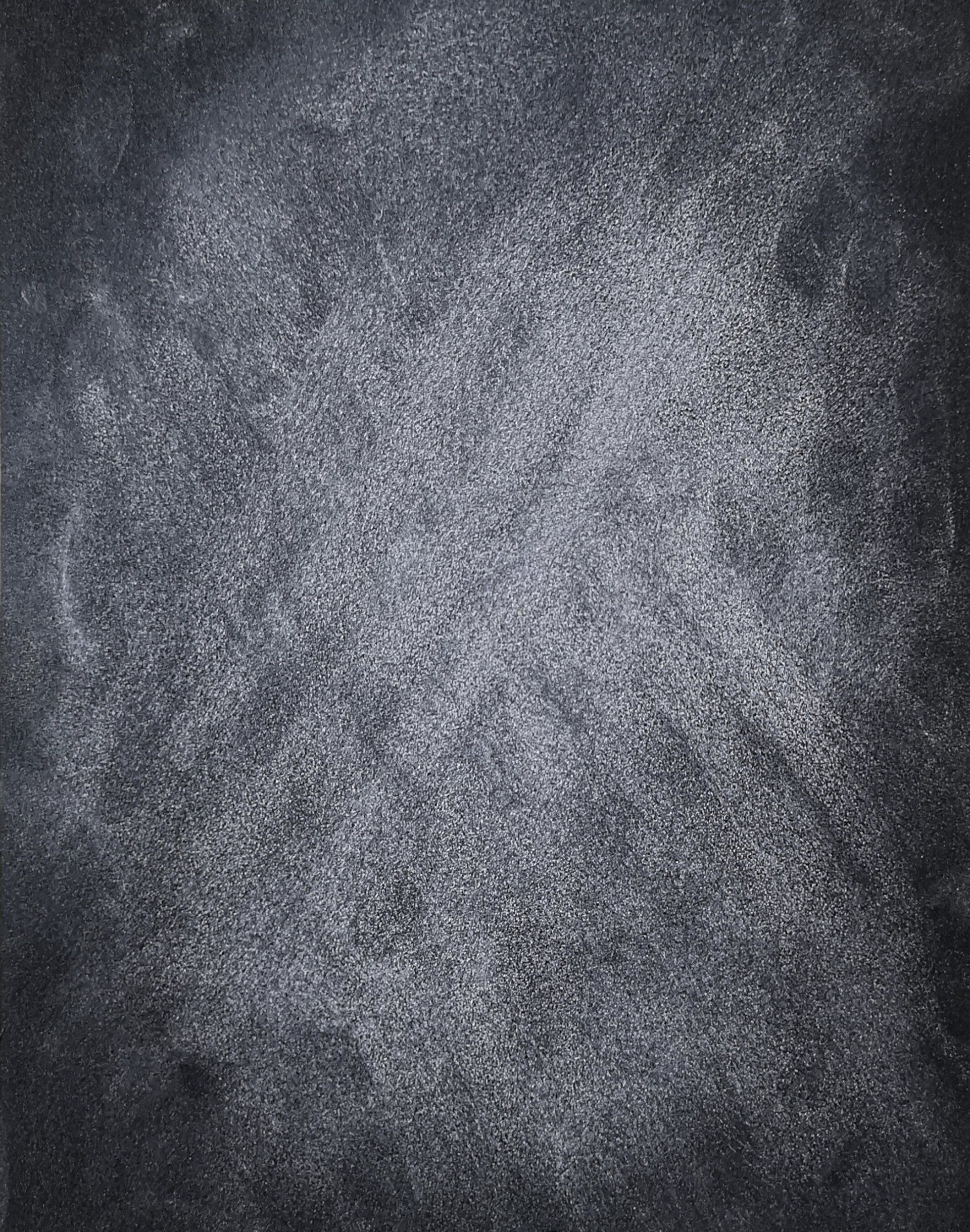 Durante el proceso intenté hacer cambios en el hacer. Utilicé como soporte las hojas de papel esmeril que fueron mi nuevo lienzo, y experimenté con herramientas de mi hábitat cotidiano como la bolsa de agua caliente y los cubiertos de cocina que conectaron lo bidimensional de la pintura con acciones de mi propio cuerpo.